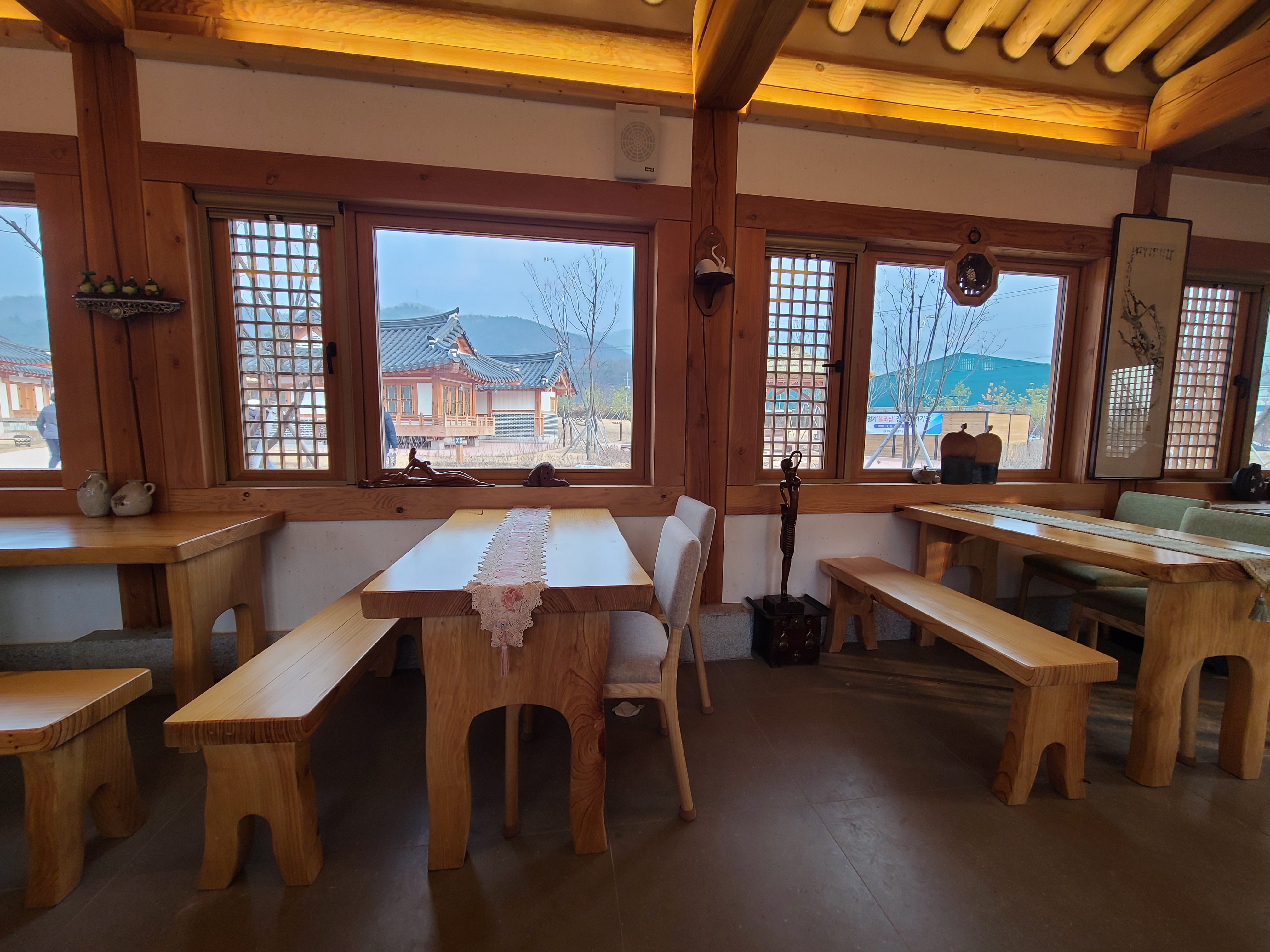 창밖으로 한옥마을 풍경이 다 보인다.