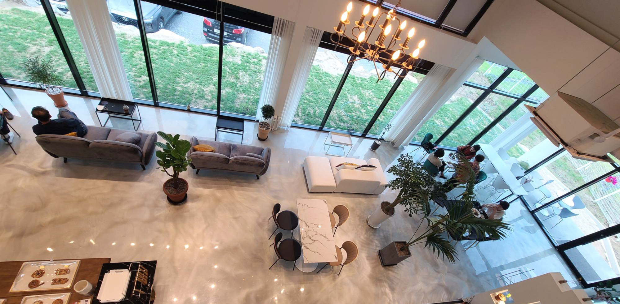 대리석 바닥과 적절하게 거리두기 되는 공간이 있다. 너무 대형 카페도 아닌 중형 카페 느낌이다.