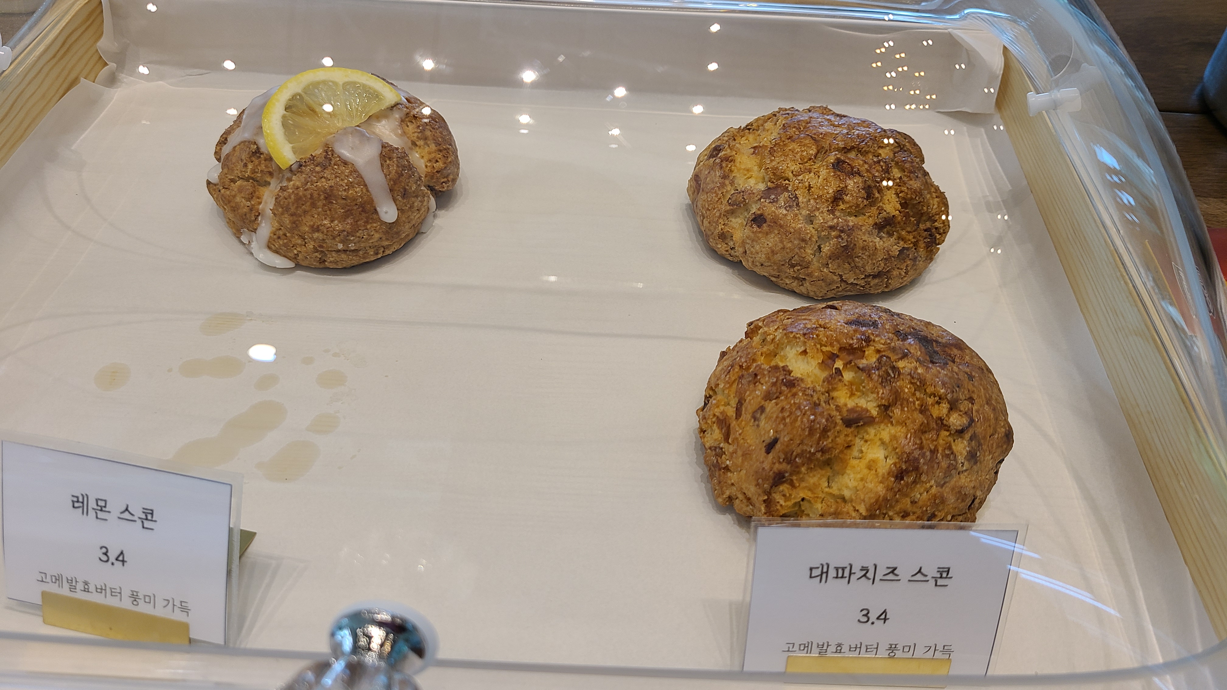 내가 맛있어했던 레몬 스콘은 3400원이다. 대파 치즈 스콘도 있다. 암튼 카페 쎄븐씨드의 스콘은 내가 먹어본 것 중에 최고이다.