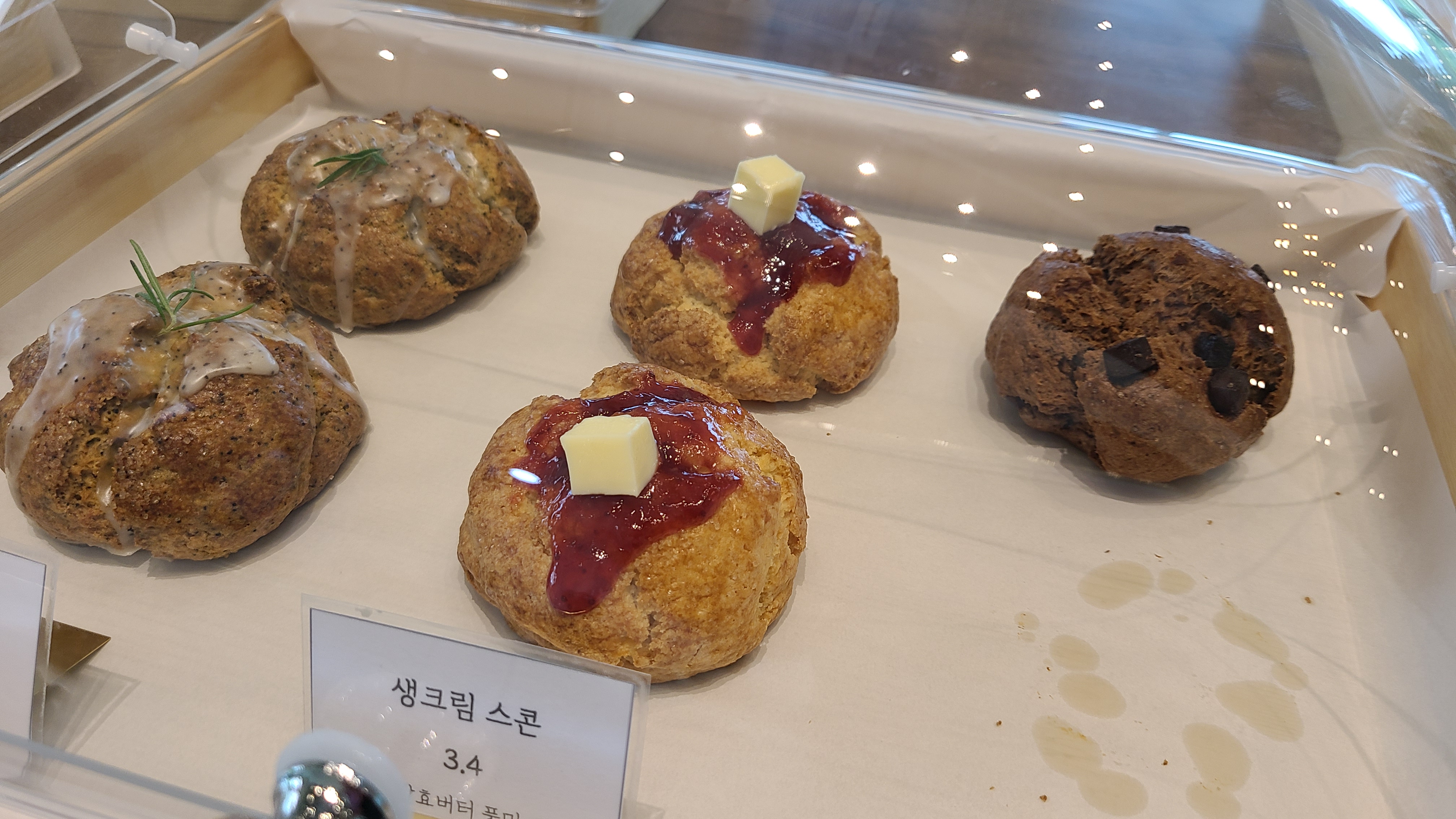 생크림 스콘과 초고 스콘도 더 있다. 녹차 스콘도 맛있었다.