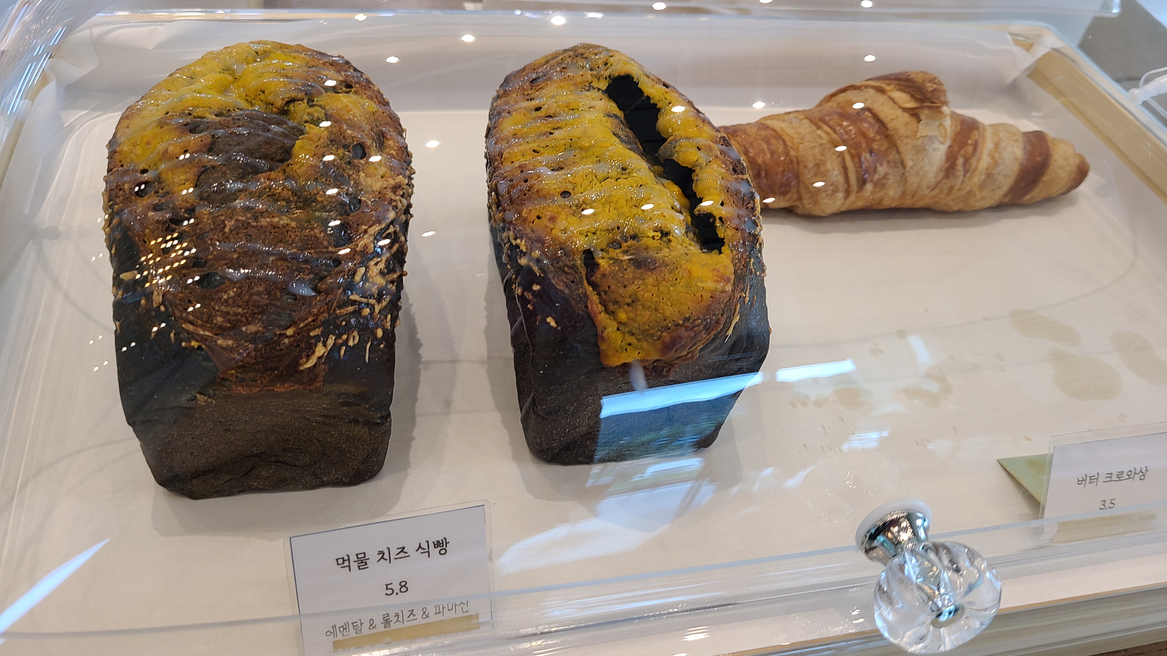 배고플 때는 먹물 치즈 식빵, 버터 크로와상은 3500원이다.