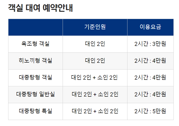 패밀리 스파텔 가족탕 대실 가격 (2시간 기준)