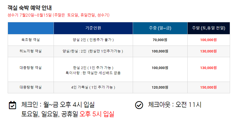 히노끼형 객실, 대중탕형 객실 - 주중 10만원 주말 13만원