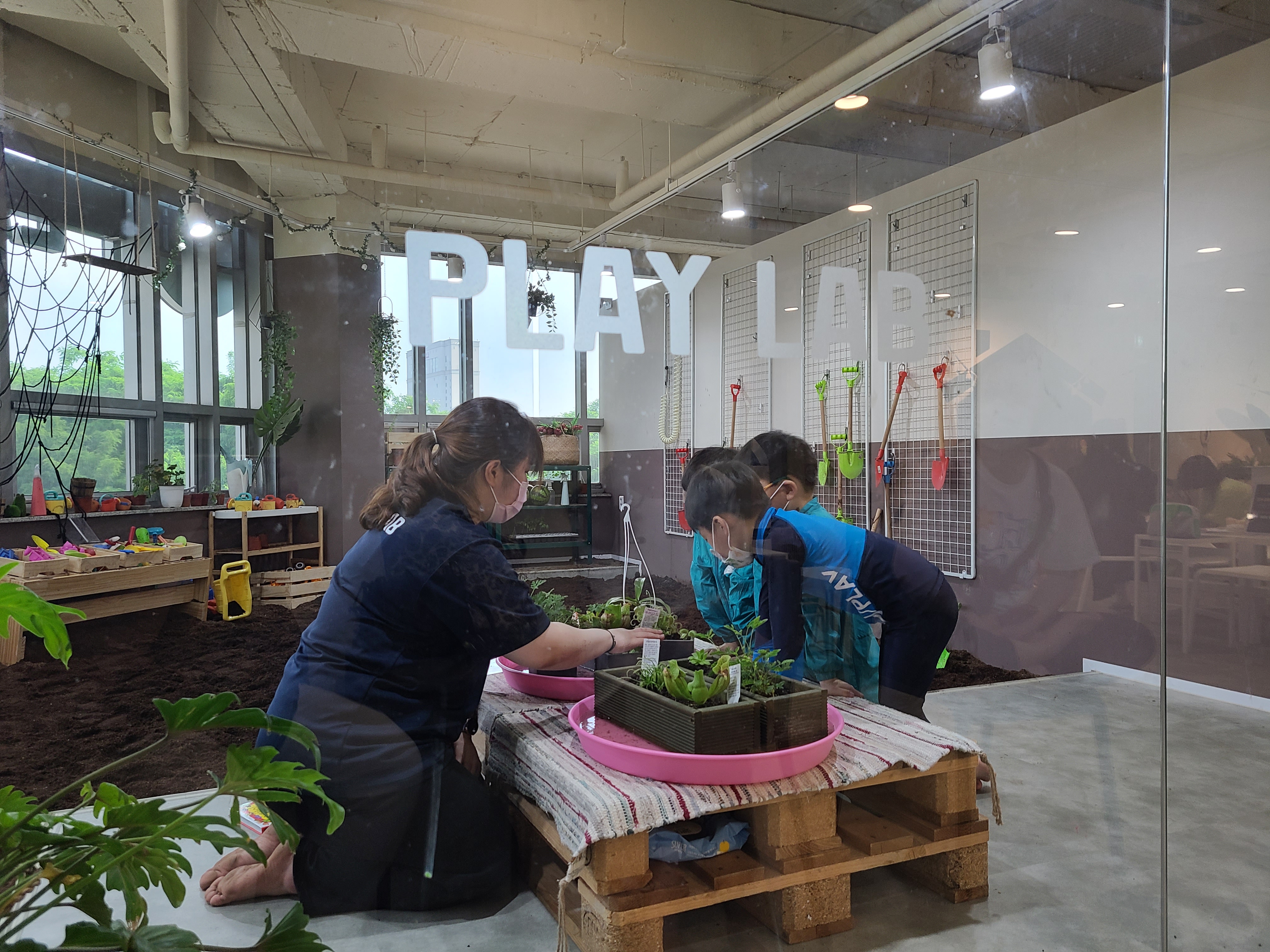 처음으로 신청한 것은 플레이 랩 흙놀이이다. 모래놀이는 많이 체험해봤지만 흙을 밟는 것은 아이들도 생소했을 텐데 아이들도 흙에서 이것저것 찾고 만져도 보니 정서상 좋을 듯싶다.