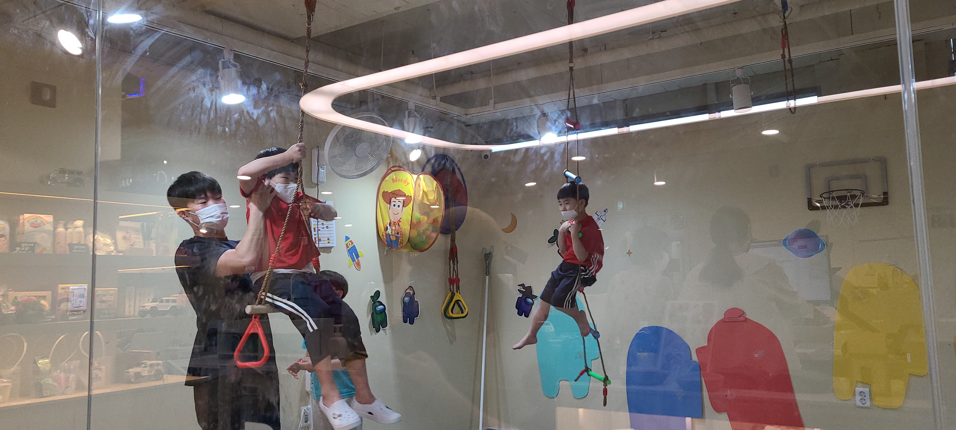 며칠 뒤 다시 예약해서 이번에 큰아이 둘째 아이 다 데리고 왔다. 오늘은 슬라이드에서 노는 체험이다.