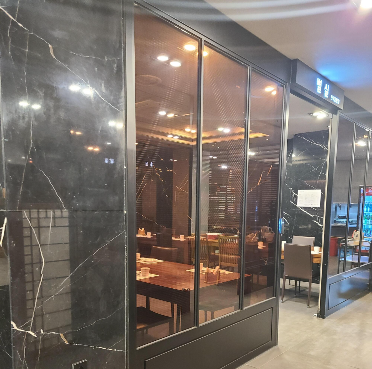 1층에 별실이다. 유리창으로 되어있는 곳은 별실이다. 주로 이곳에서 먹었는데 오늘은 예약을 해서 그런지 2층으로 올라가라고 한다.
