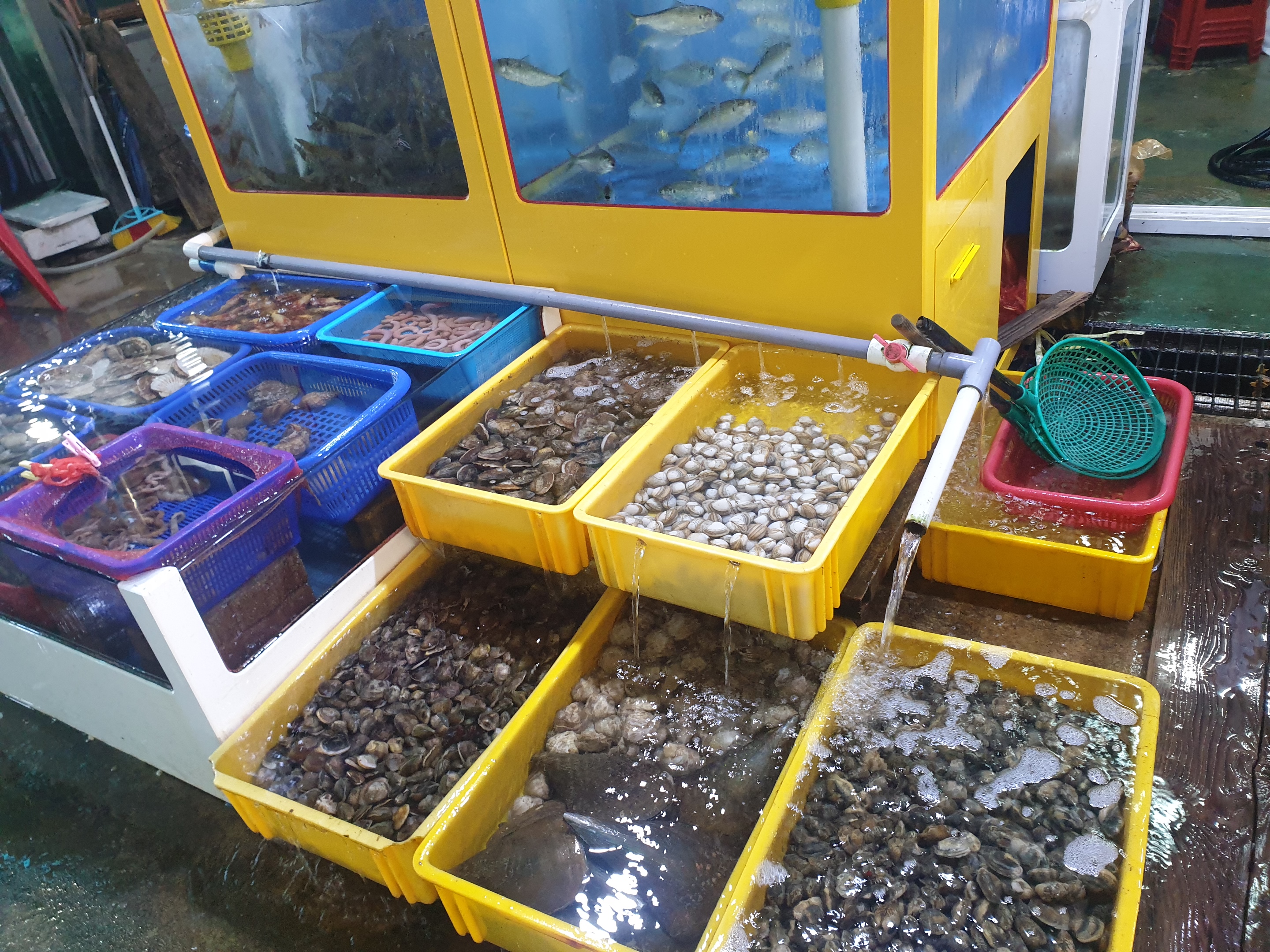 내가 선택한 곳은 조개와 문어가 있는 곳이다. 큰 아들은 회랑 조개는 먹지 않고 문어 탕탕이만 먹기 때문이다.