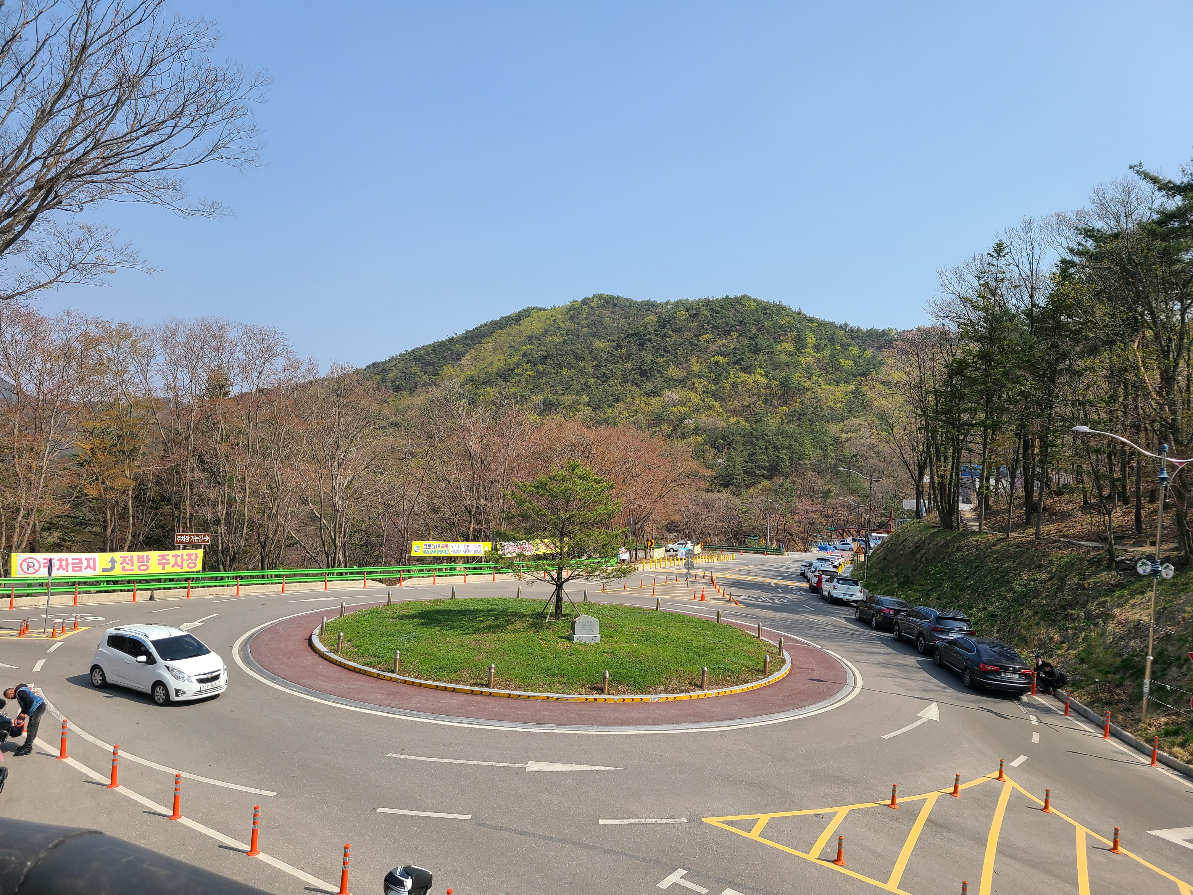 회전교차로 옆에 주차되어 있는 차도 보인다. 이곳에서 조금 내려가면 보은 짚라인 타는 곳도 있다.