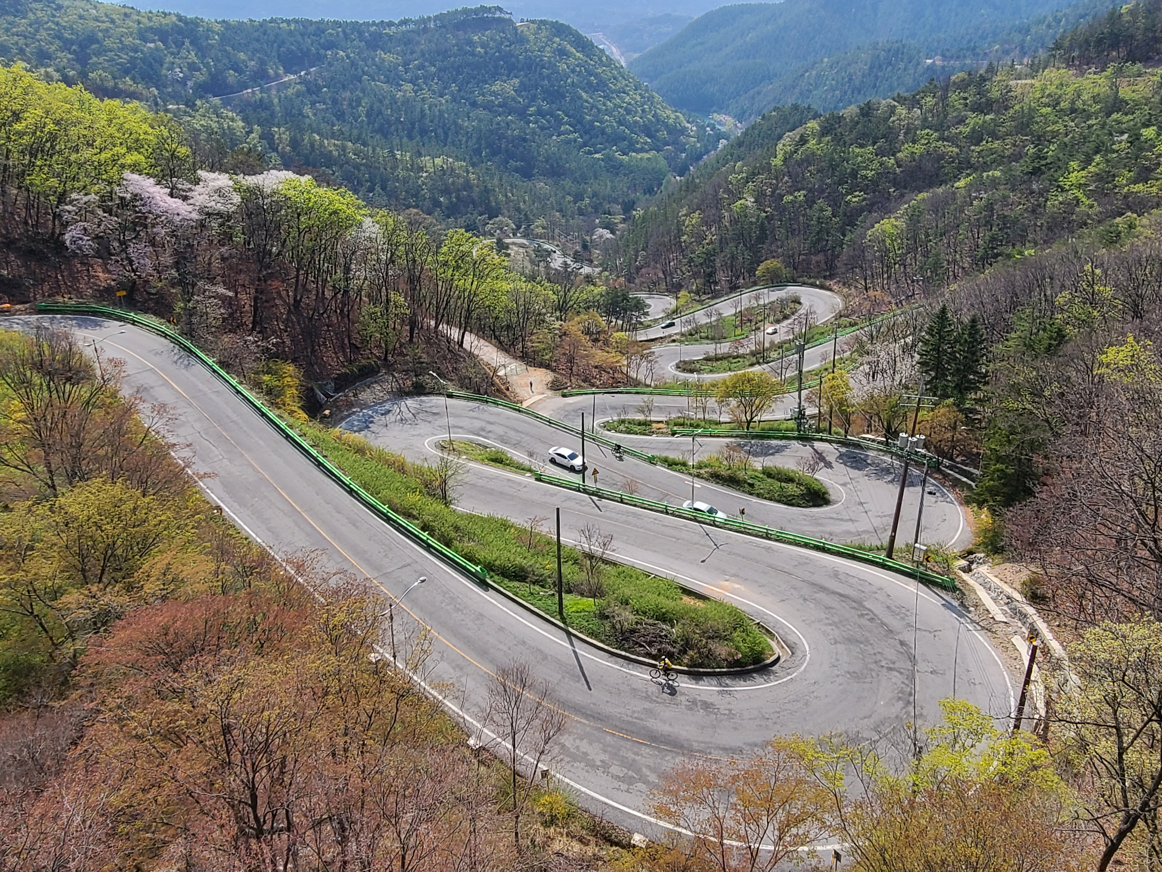 완전 고불고불한 길이 있다. 초보들은 운전하기 어려울 정도이다. 자전거 라이딩하는 사람들도 많다.