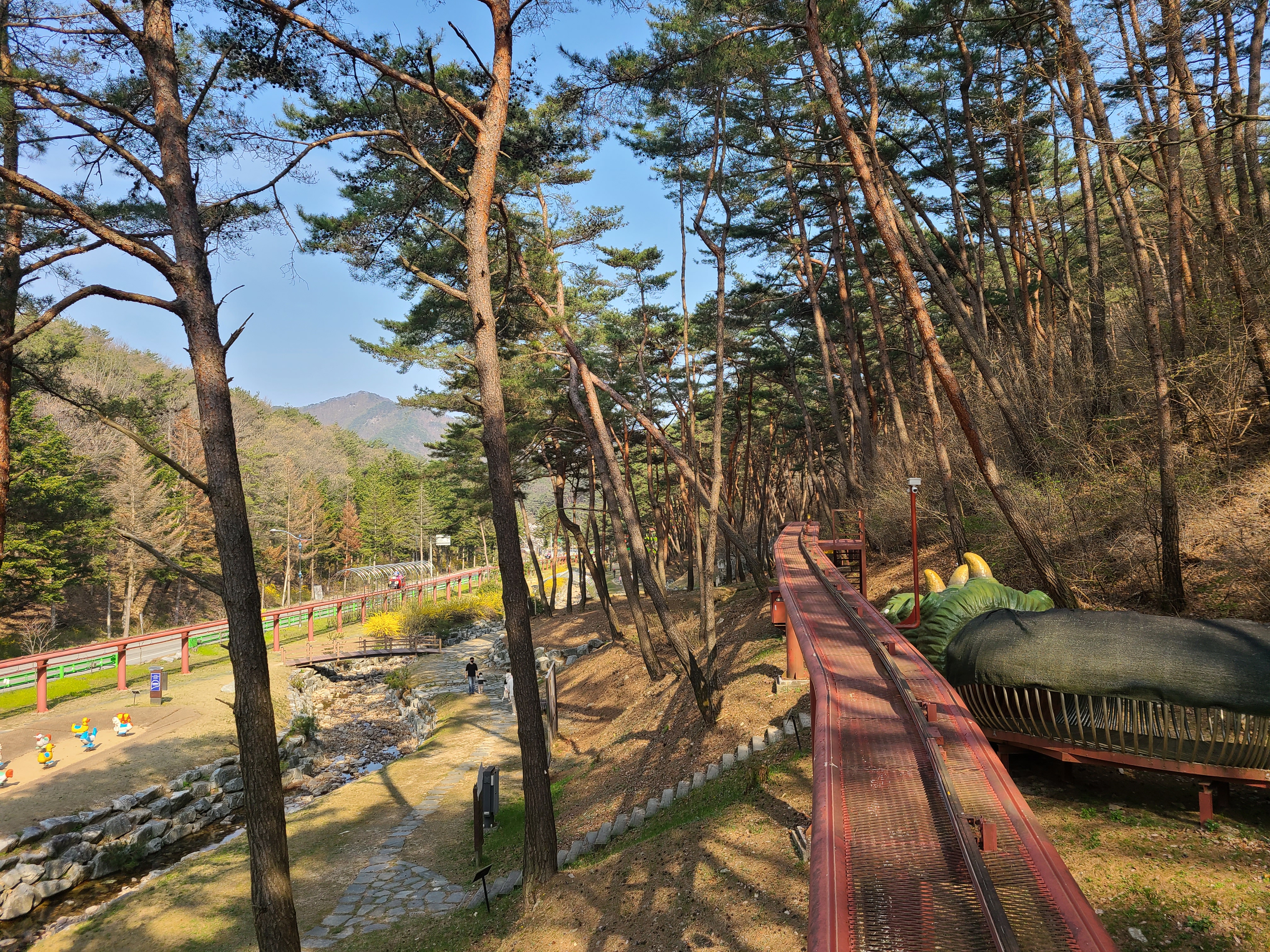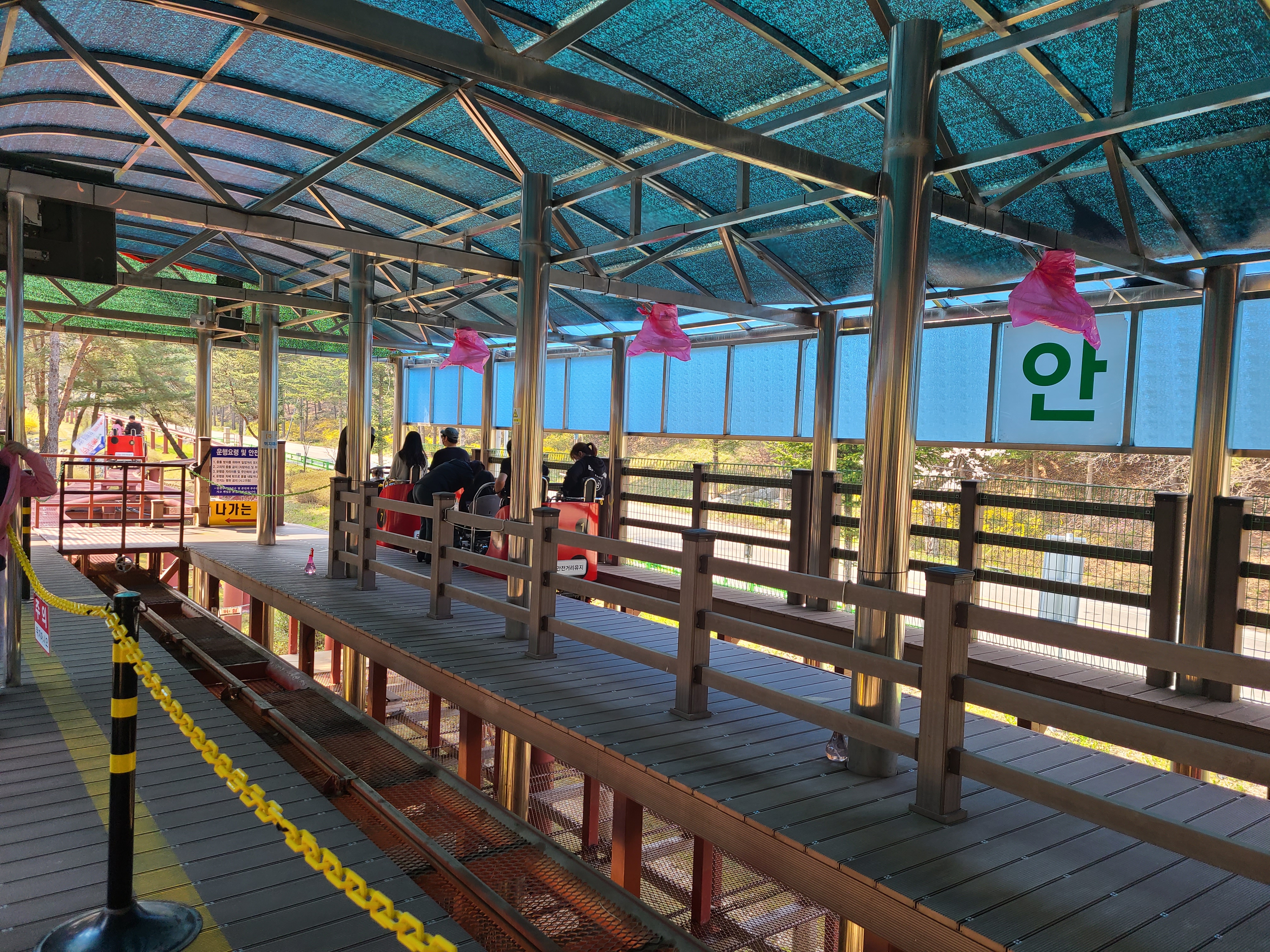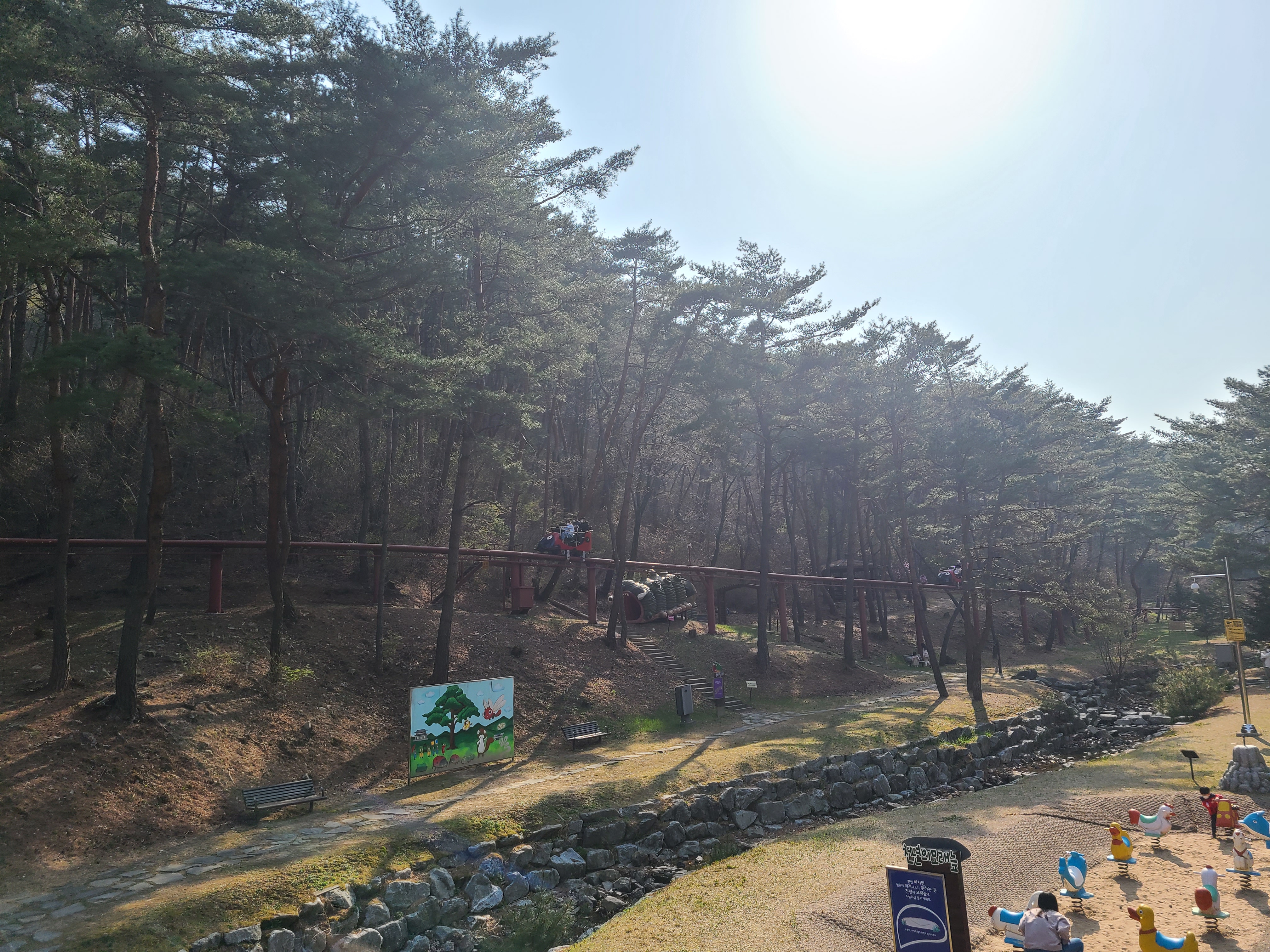 보은 솔향공원에 스카이 바이크가 생겼다. 공원 한 바퀴를 레일 위에서 하늘에서 나는 그런 느낌이 드는 곳이다. 거의 가족 단위로 아이들과 함께 타는 곳인 줄 알았는데 어른끼리도 많이 타는 경우도 많이 봤다.