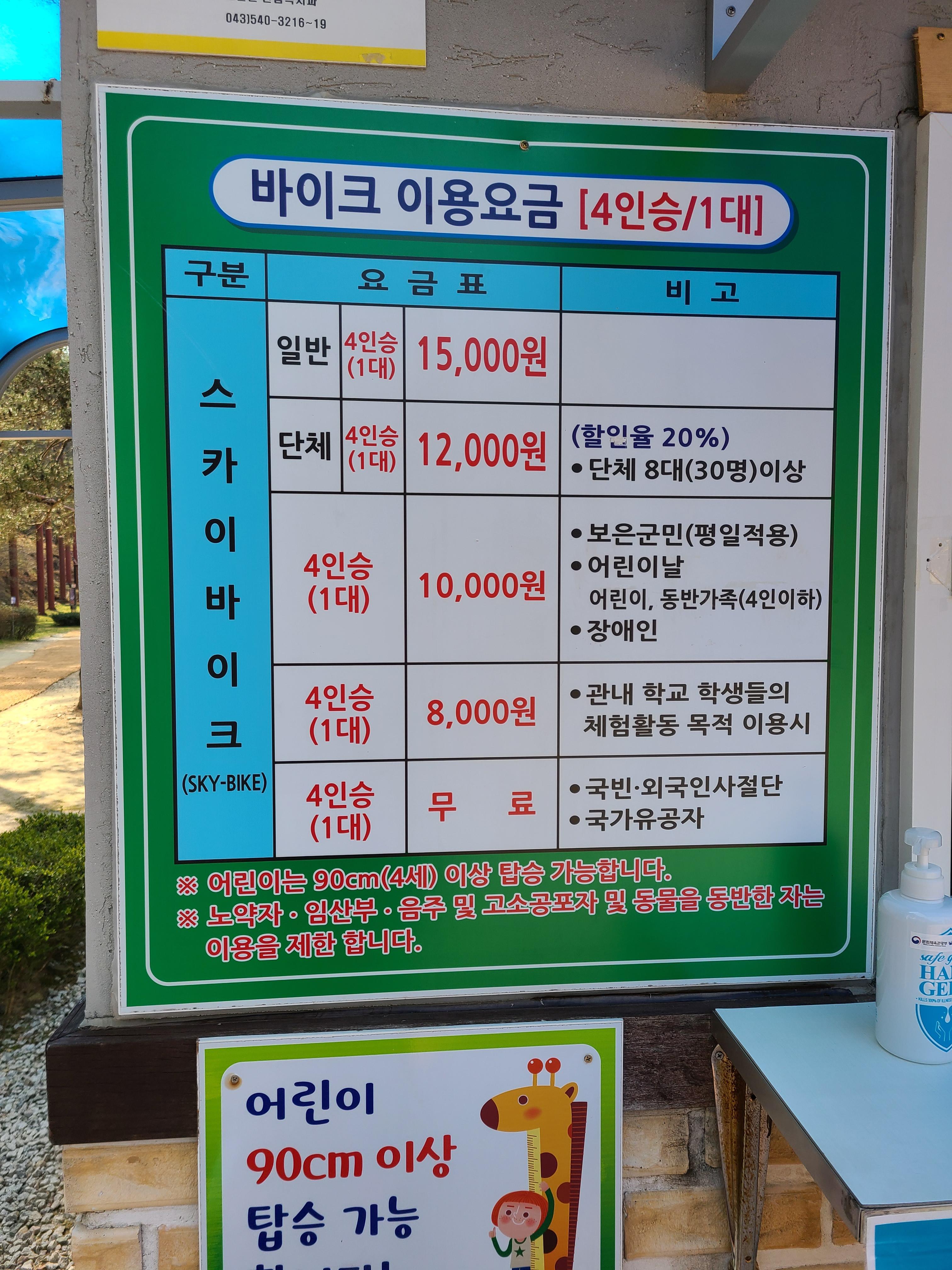 보은 스카이 바이크 이용 요금(4인승 1대 기준)