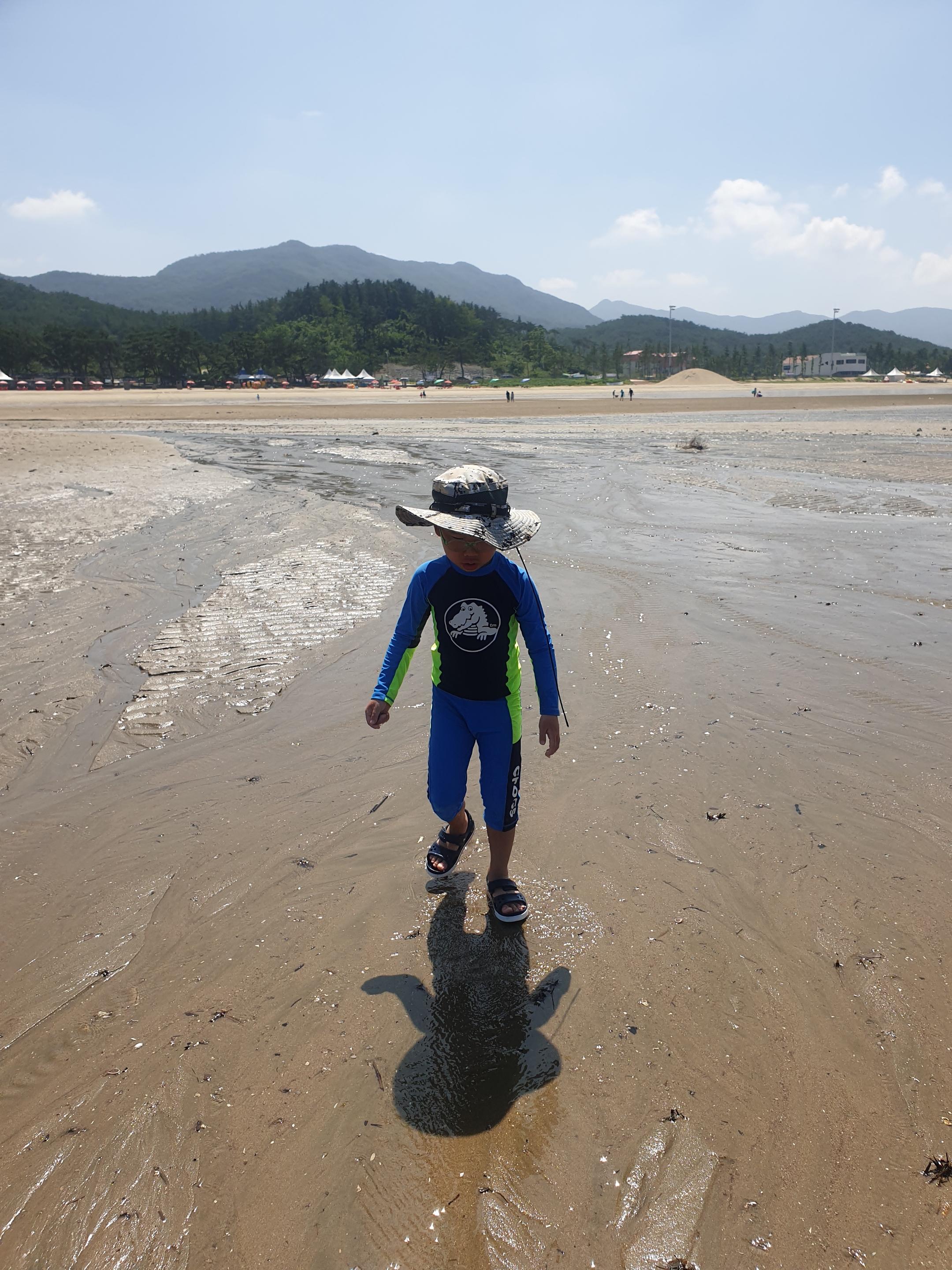 서해안에서 갯벌체험하는 곳중에 변산 해수욕장을 다녀왔다. 대천 해수욕장처럼 물이 빠져도 갯벌이 안나오는 곳만 다니다가 물이 빠지면서 갯벌이 나오는 곳이 있다는 것이 신기했다. 내가 간날은 아침에 물이 빠졌다.