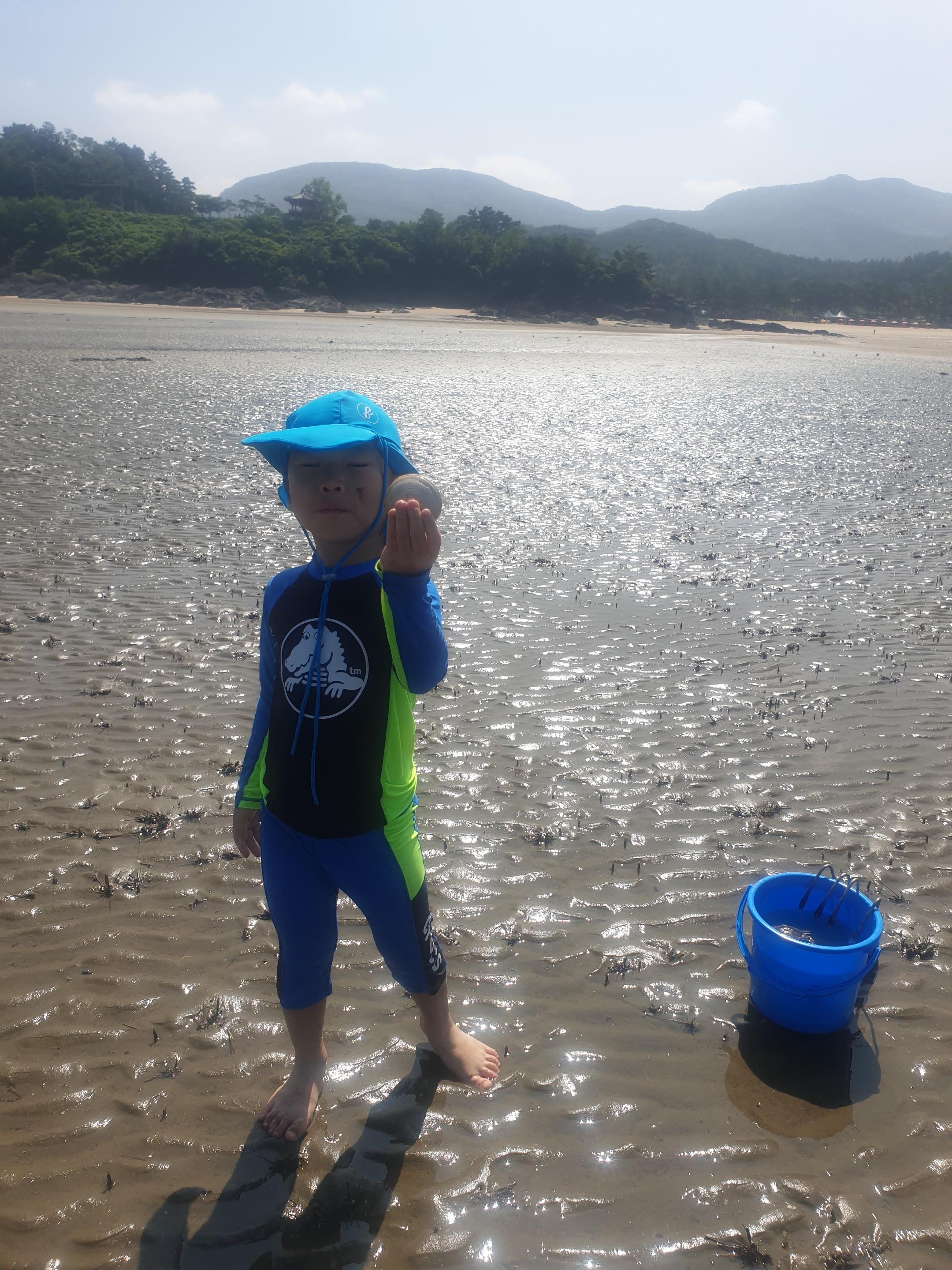 변산 해수욕장에 맛조개가 있다. 맛소금을 솔솔 치면 쏙 하고 나오는데 그때 재빠르게 잡아야한다. 처음 잡아보는 것이였는데 그것이 재미있었는지 맛조개 잡고 싶다고 했다.