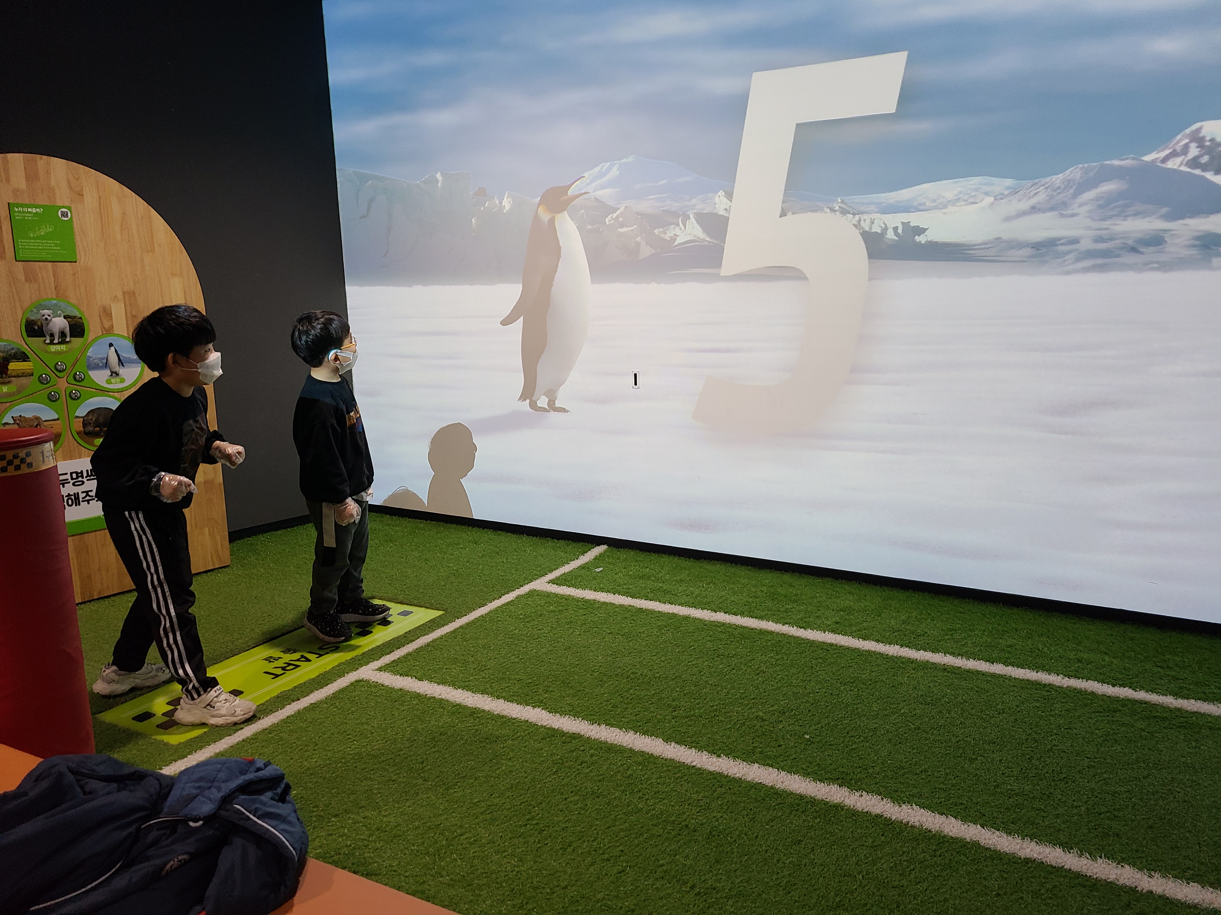 동물들과 함께 뛰는 것이다. 펭귄이나 치타 강아지와 함께 뒤 어보는 것이다.