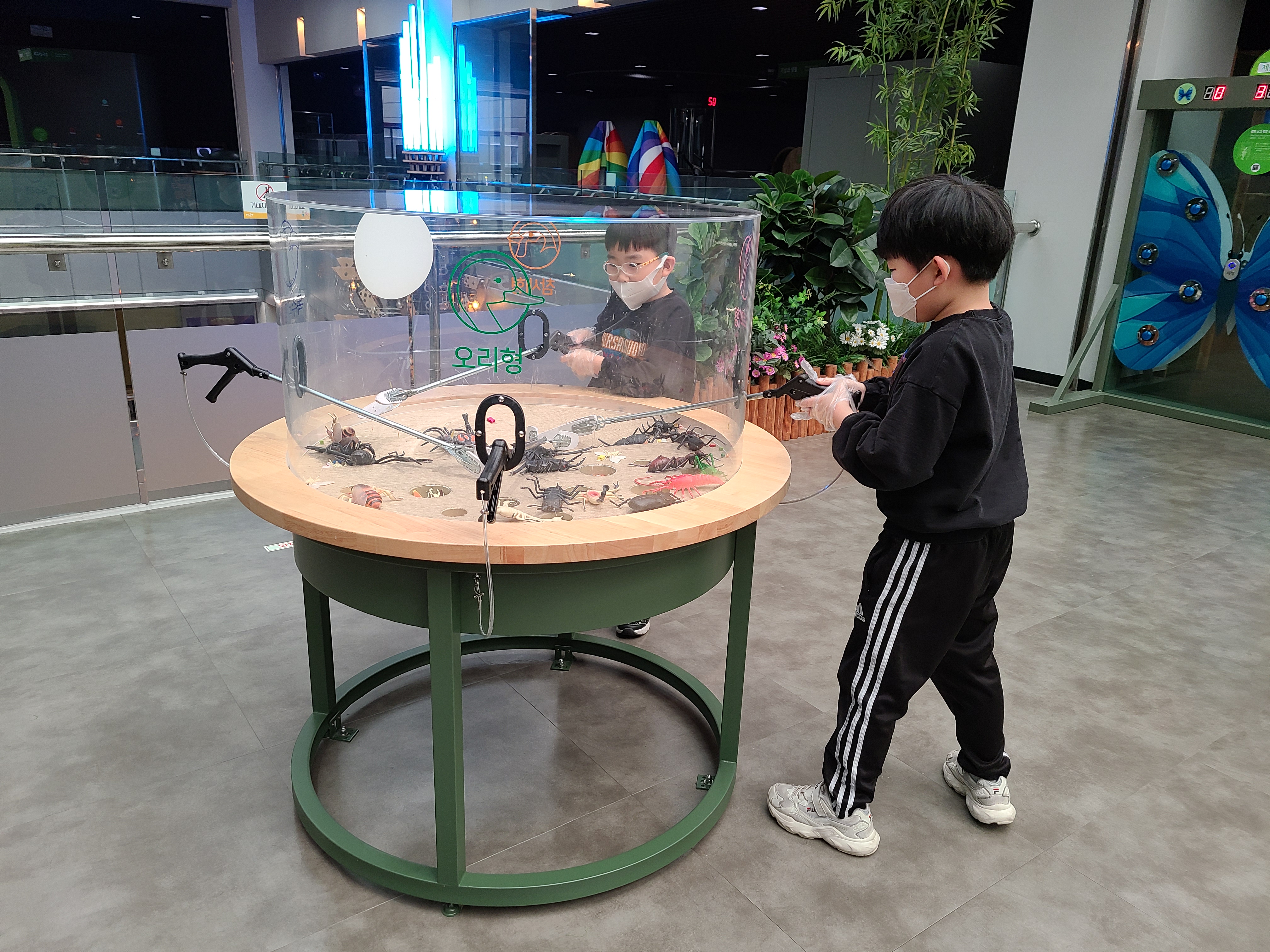 곤충 모형 집게로 잡기