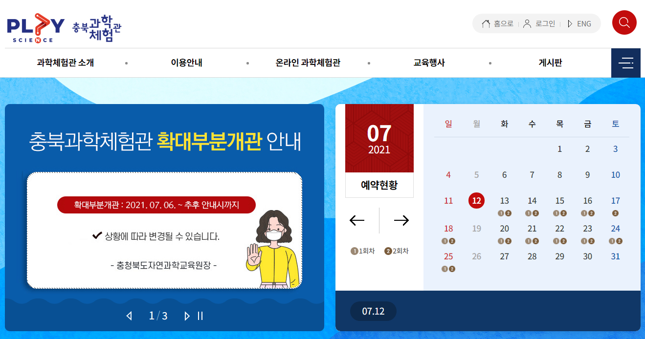 충북과학관은 인터넷 예매를 해야 한다. 당일 예약은 안되고 하루 전에 예약하니 충북 과학체험관 홈페이지에서 예약을 하고 관람할 수 있다. 오전 오후로 두 번 신청을 받는다. 아이들도 키즈카페처럼 재미있어하니 한 번 체험해보는 것도 좋을 것 같다.