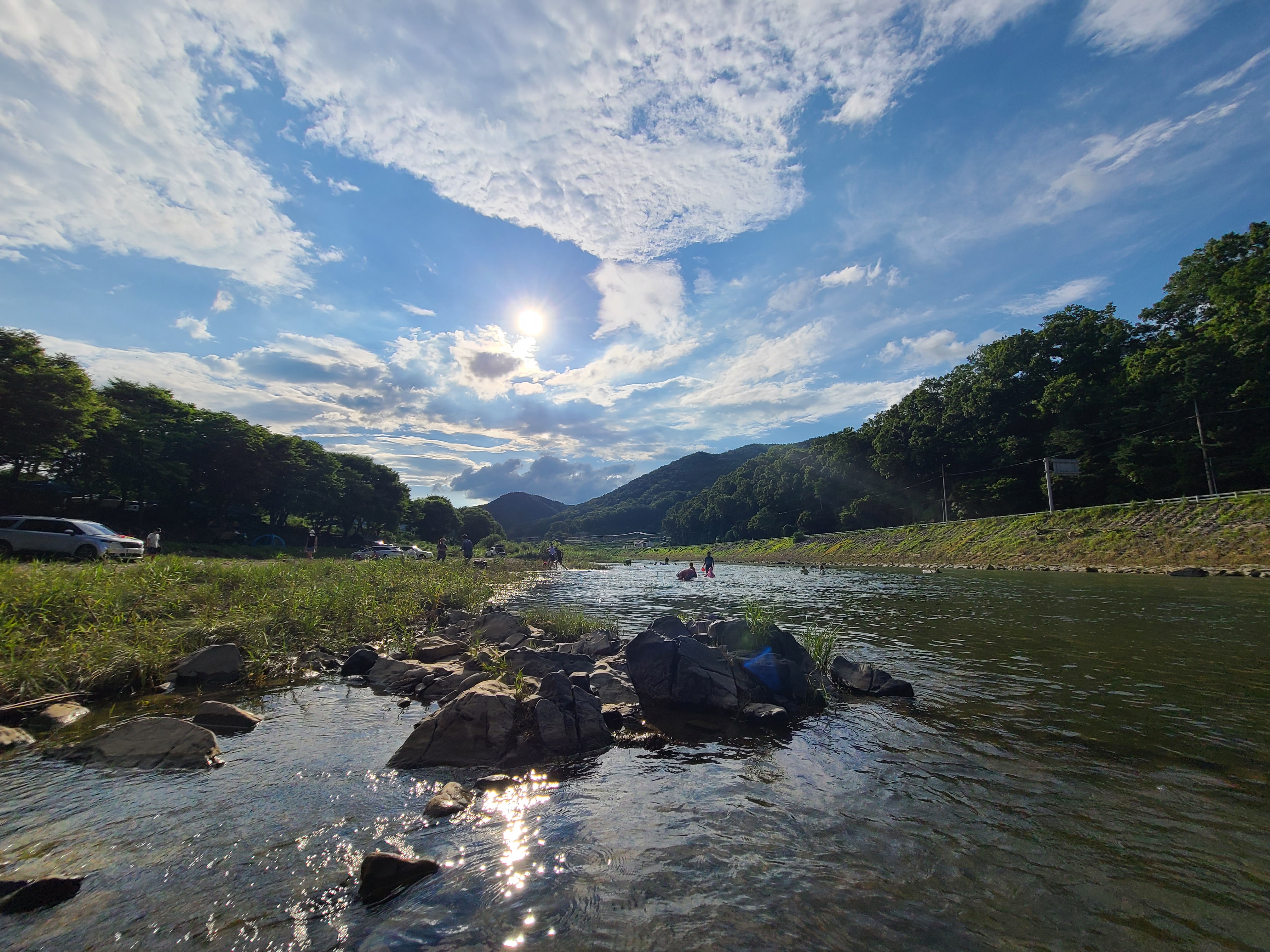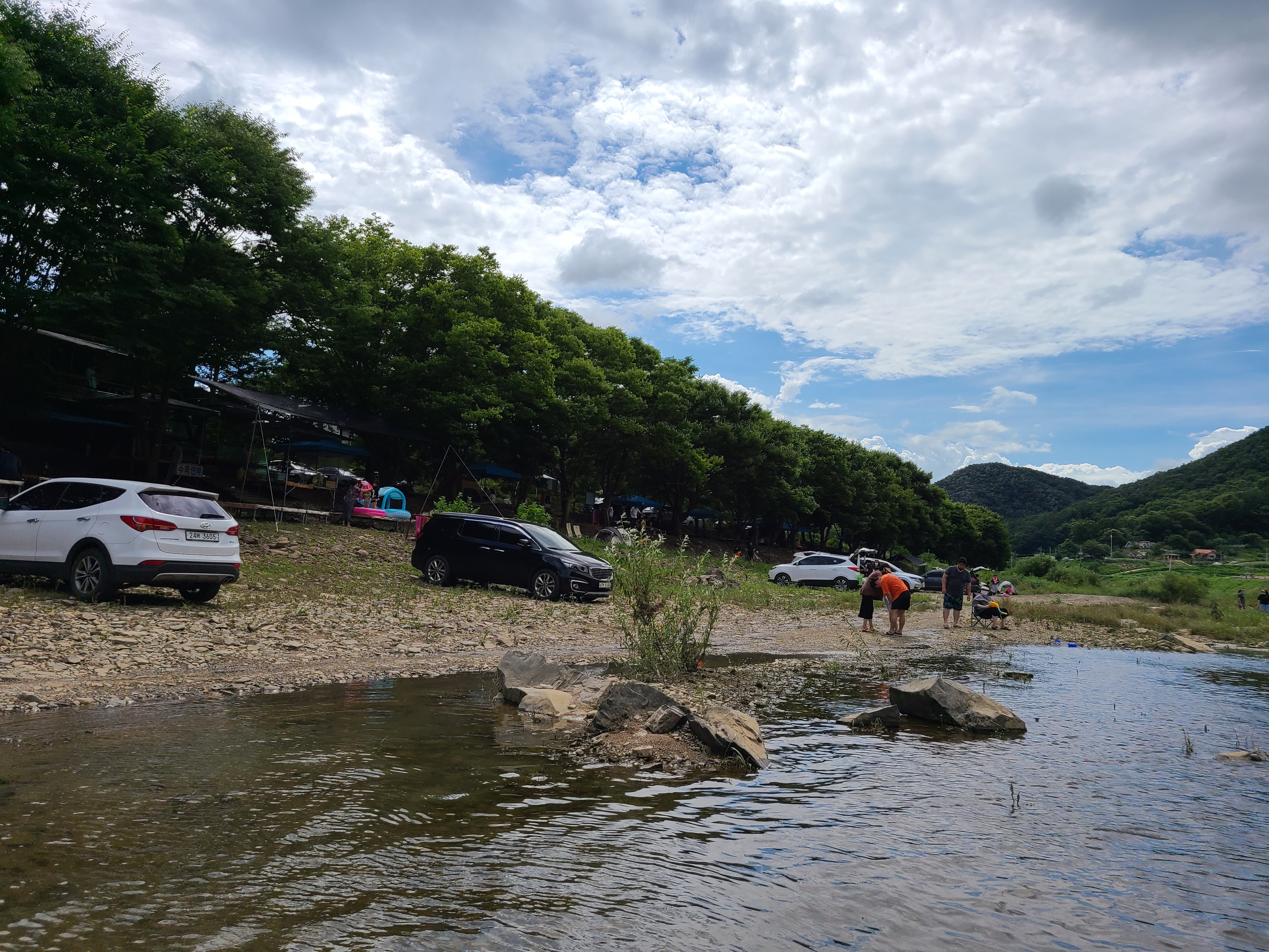냇가로 차를 끌고 와서 잠깐씩 쉬는 사람들도 있고 가족끼리 오는 사람들이 대부분인 것 같다. 어린아이들이 놀기도 적당한 곳 같다.
