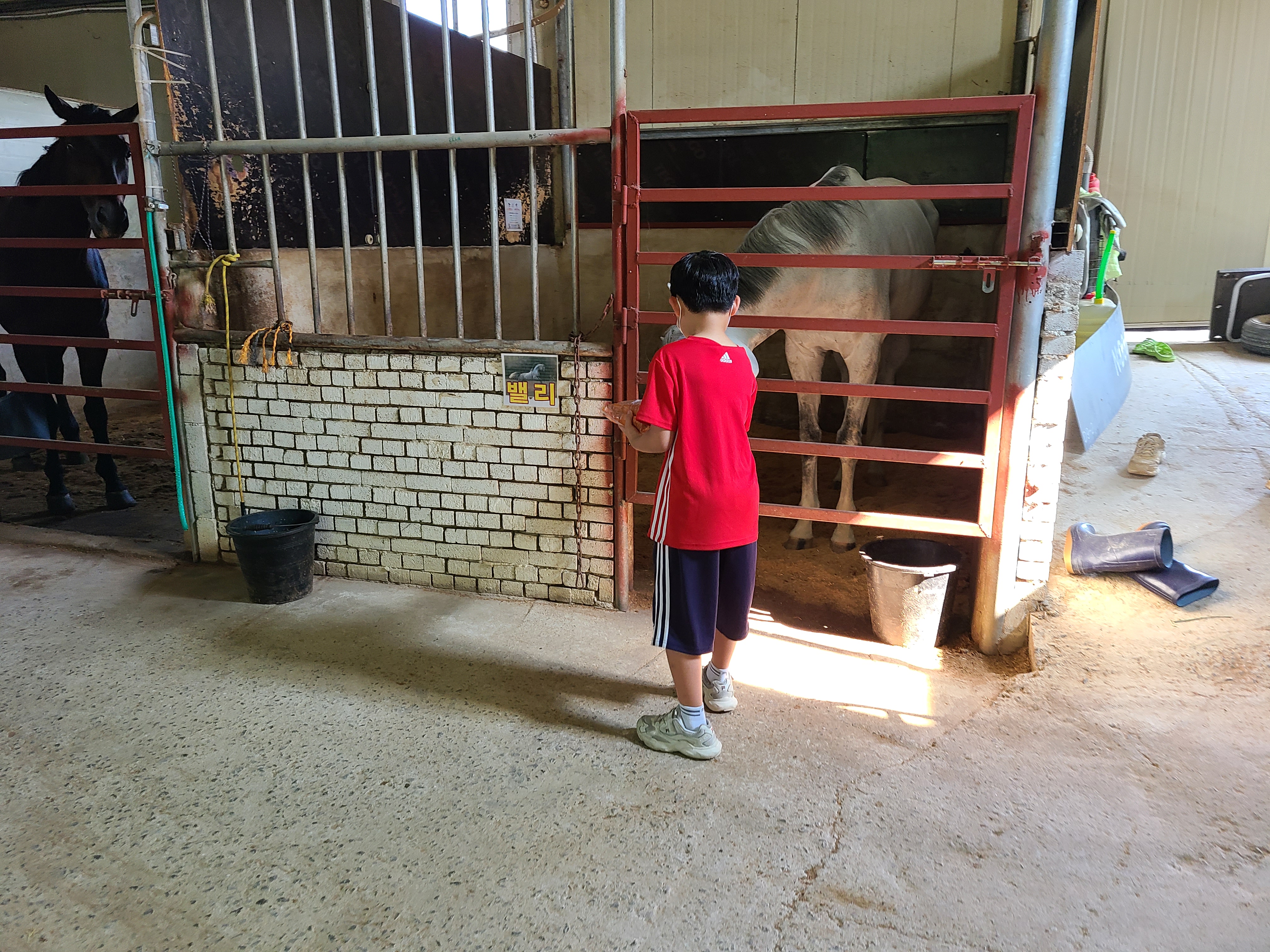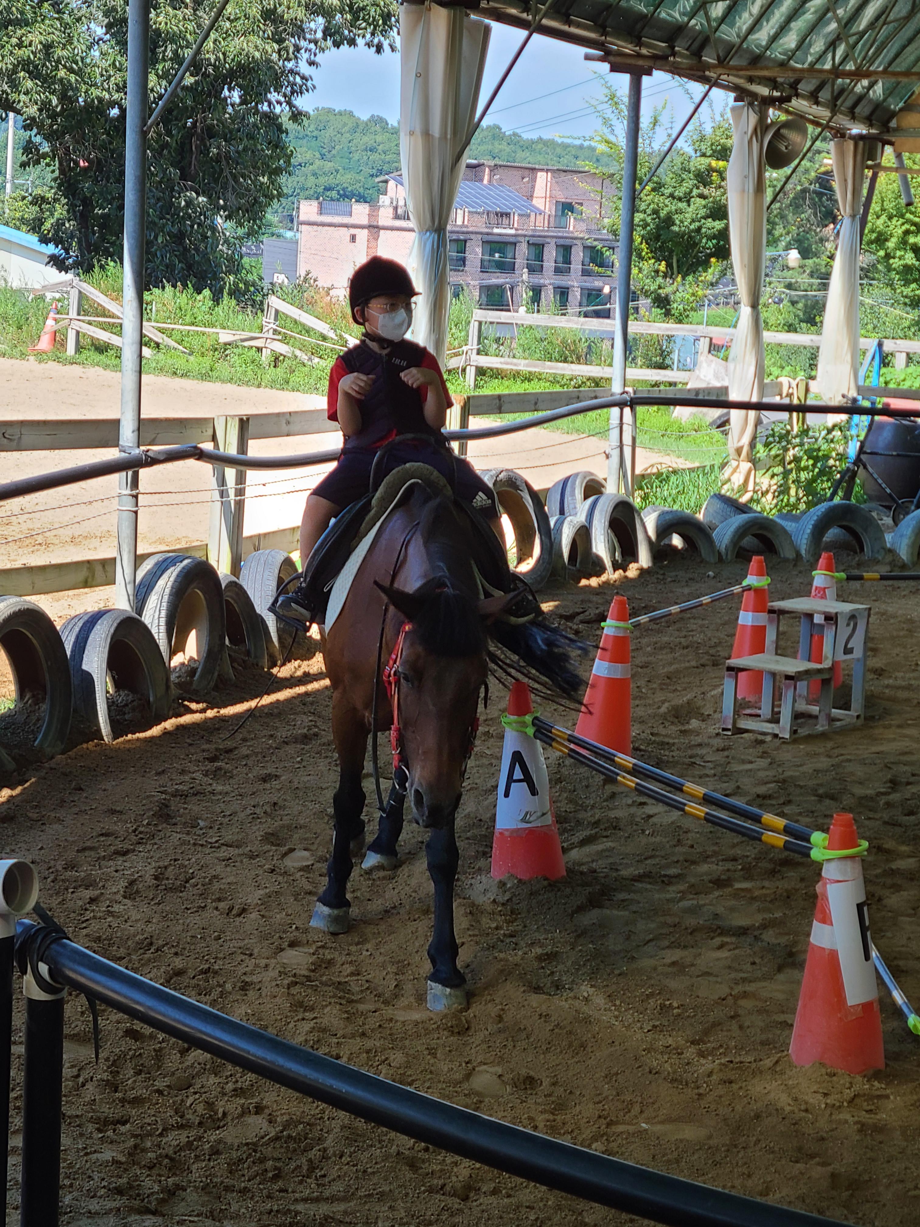 처음에는 커다란 말 위에서 타는 것도 두려워했는데 평보도 잘하고, 평보보다 조금 빠른 걸는 속보, 엉덩이를 살짝 들어 올리는 경속보 등 나름 잘 탔다.