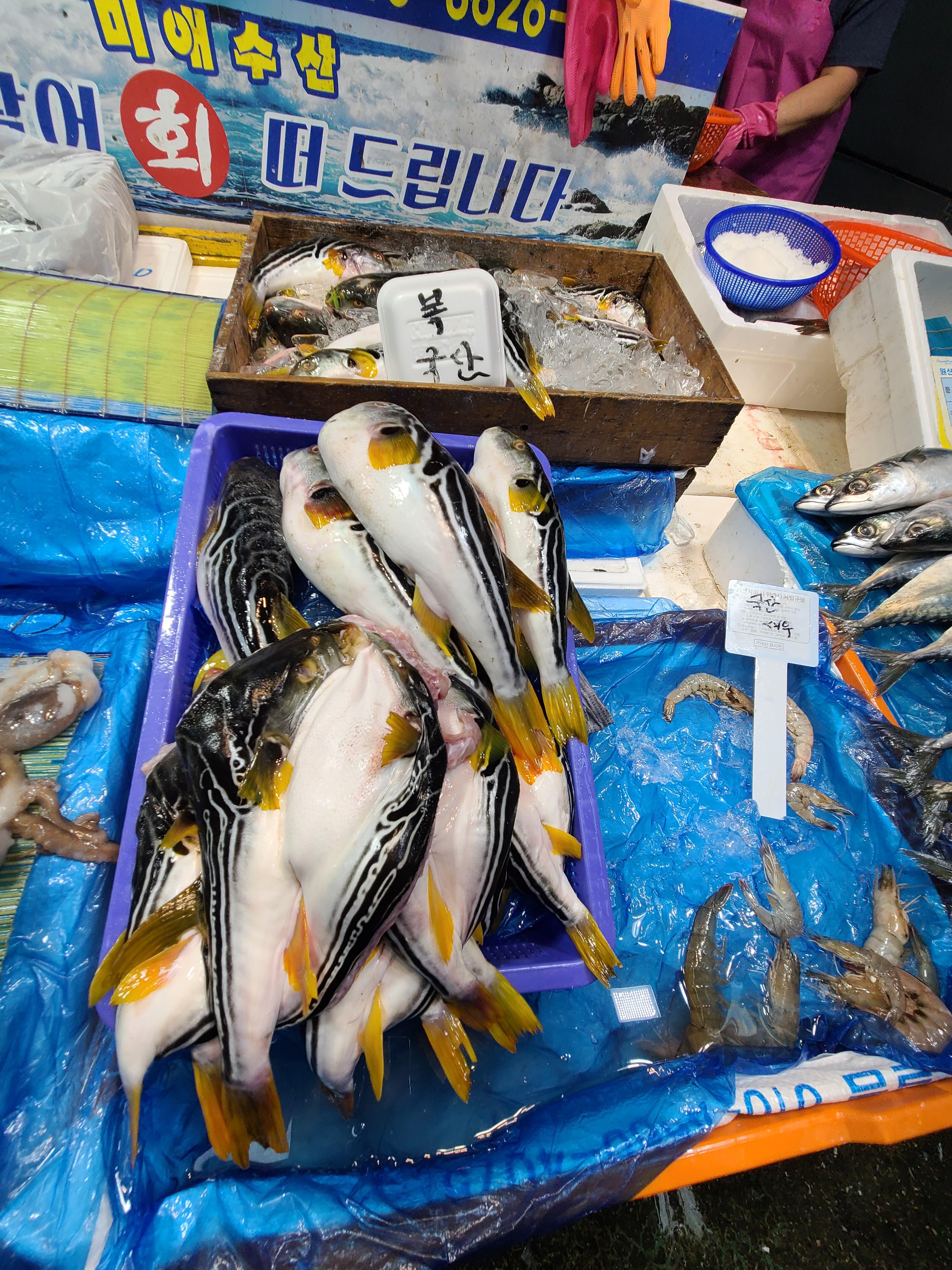 수산 시장에 가면 맛있는 것도 많고 볼거리도 많아서 항상 즐겁다.