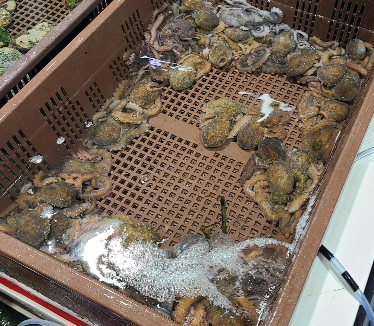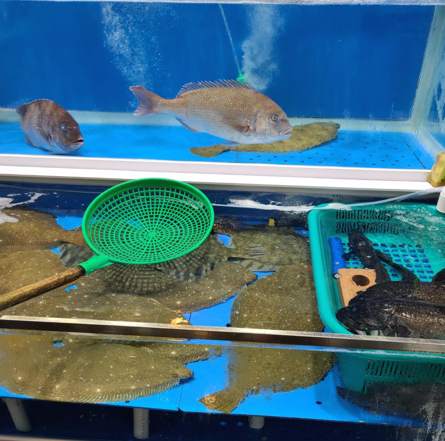 갑오징어는 일반 오징어 보다 더 쫄깃하고 탱글 거 린다. 훨씬 맛있긴 하다. 갑오징어 가격 2만 원이다. 어찌나 신선한지 수족관을 헤엄치다 못해 탈출하는 경우도 있다.