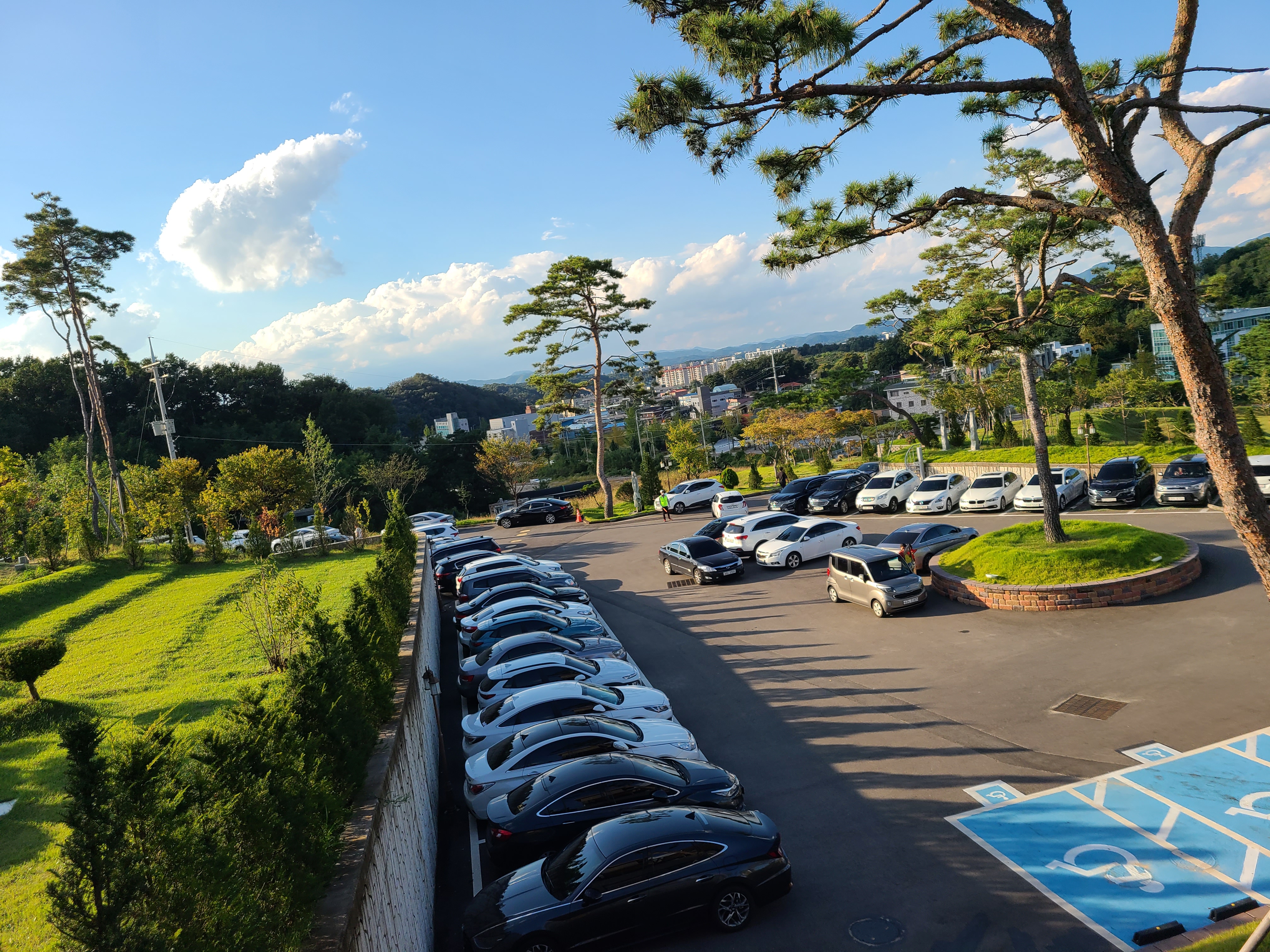 포레스트 가든 카페 주차장이다. 이곳 말도 더 안쪽으로 더 있는데 주말은 늘 차가 꽉꽉 차는 편이다. 올라기는 길은 복잡하지는 않다.