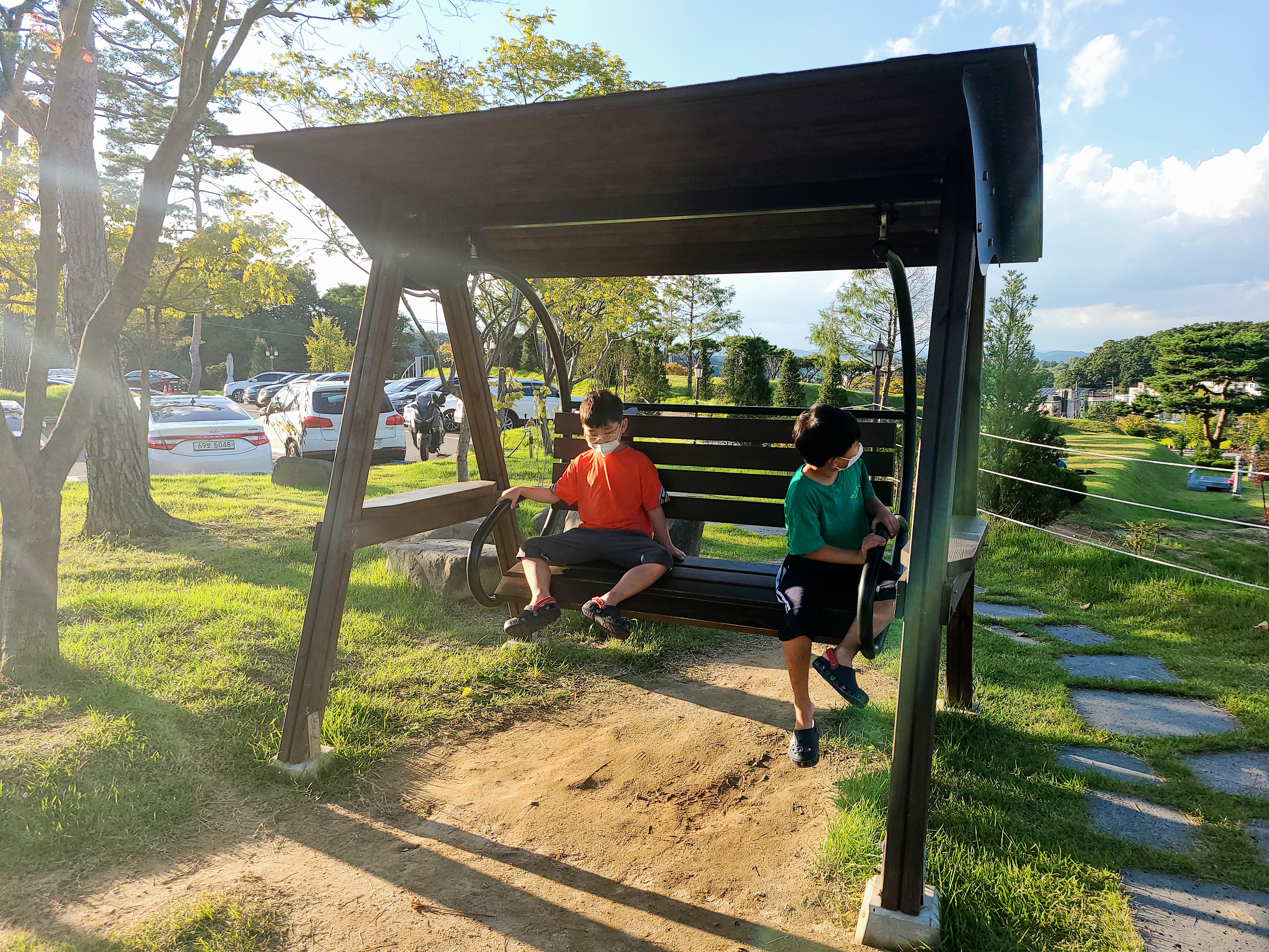 그네도 있고 흔들의자도 있어서 아이들이 지루하지 않은 시간을 보낼 수 있다.