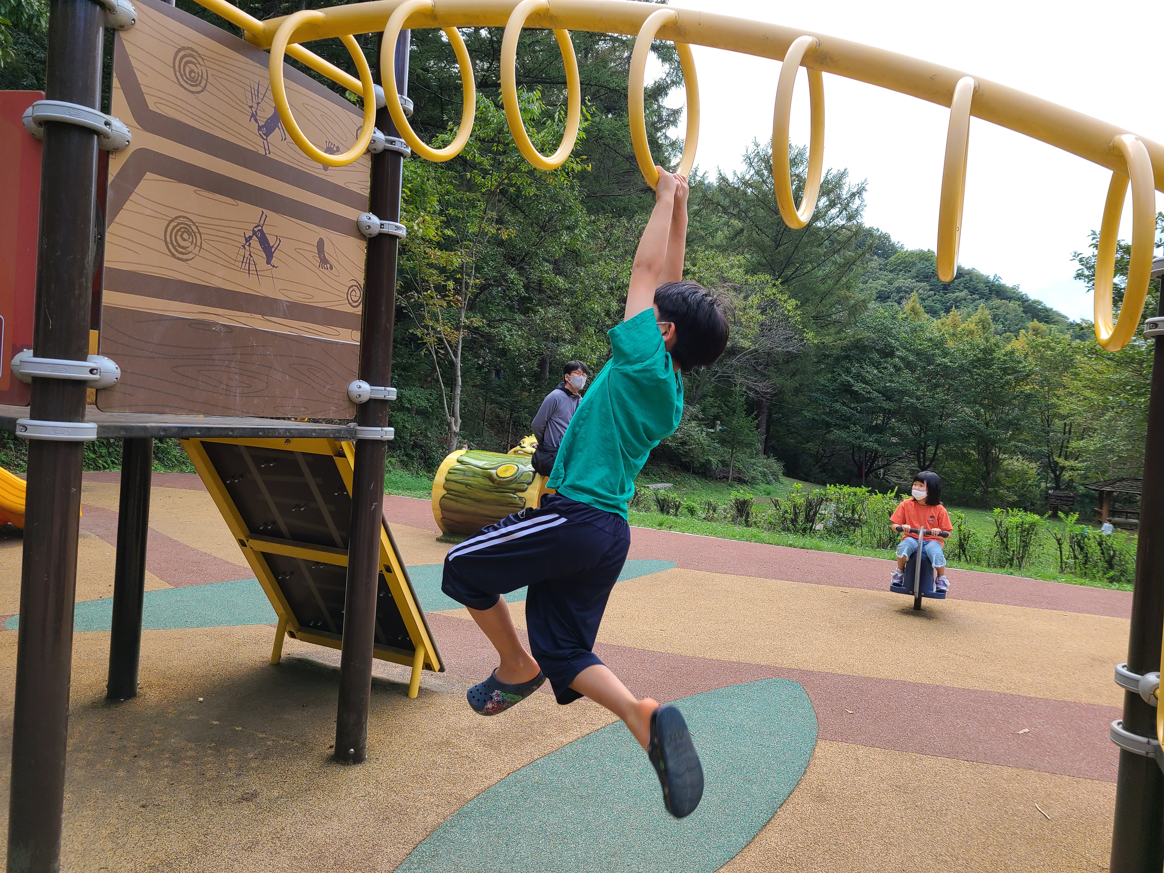 다 놀고 나서 아이들은 한 시간 넘게 놀이터에서 놀고 어른들은 바라보며 쉬었다.