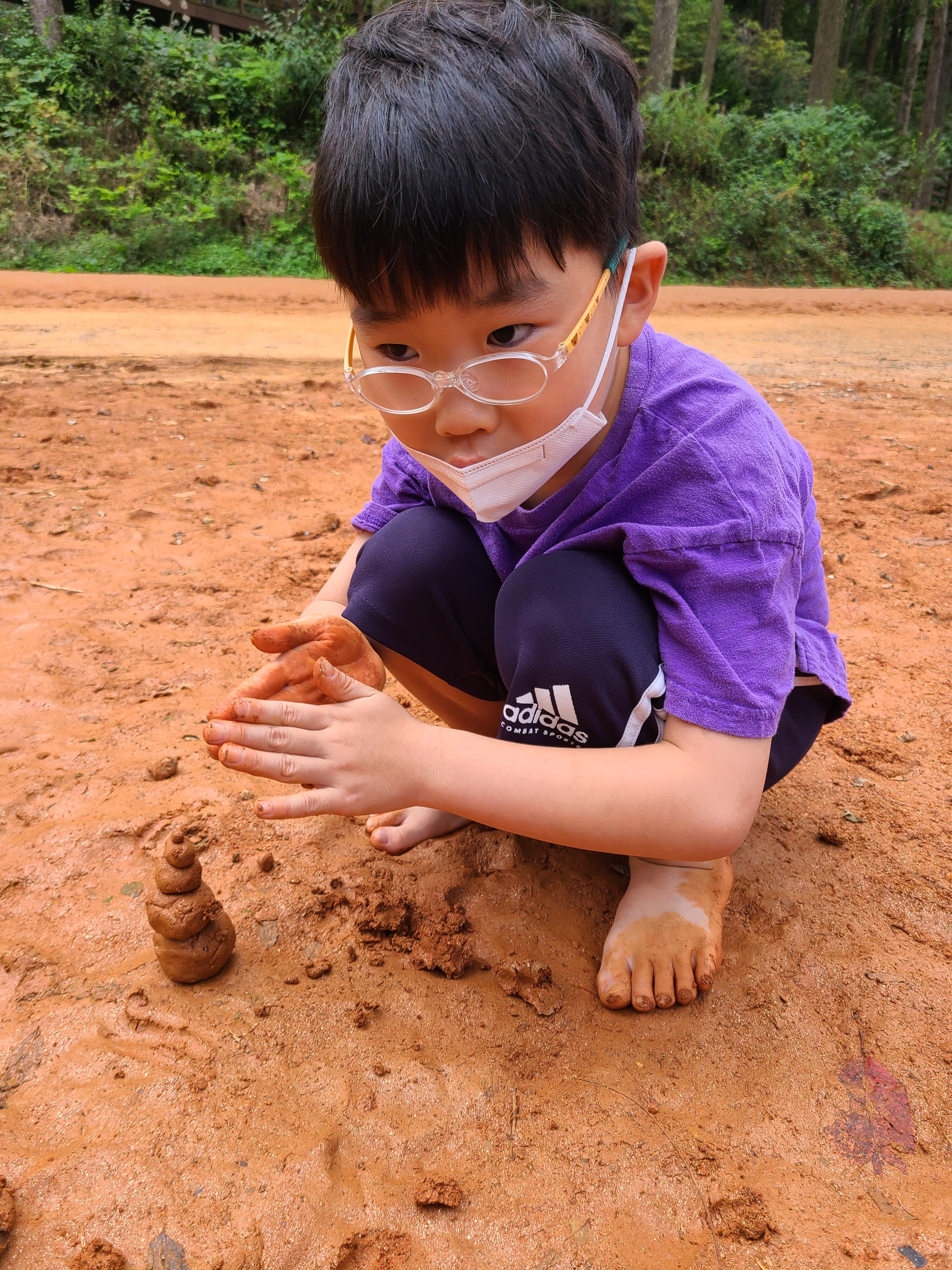 작품 만들기 시작했다. 황토를 돌돌 말아서 눈사람을 만든다고 했는데 모양이 영 똥이다.