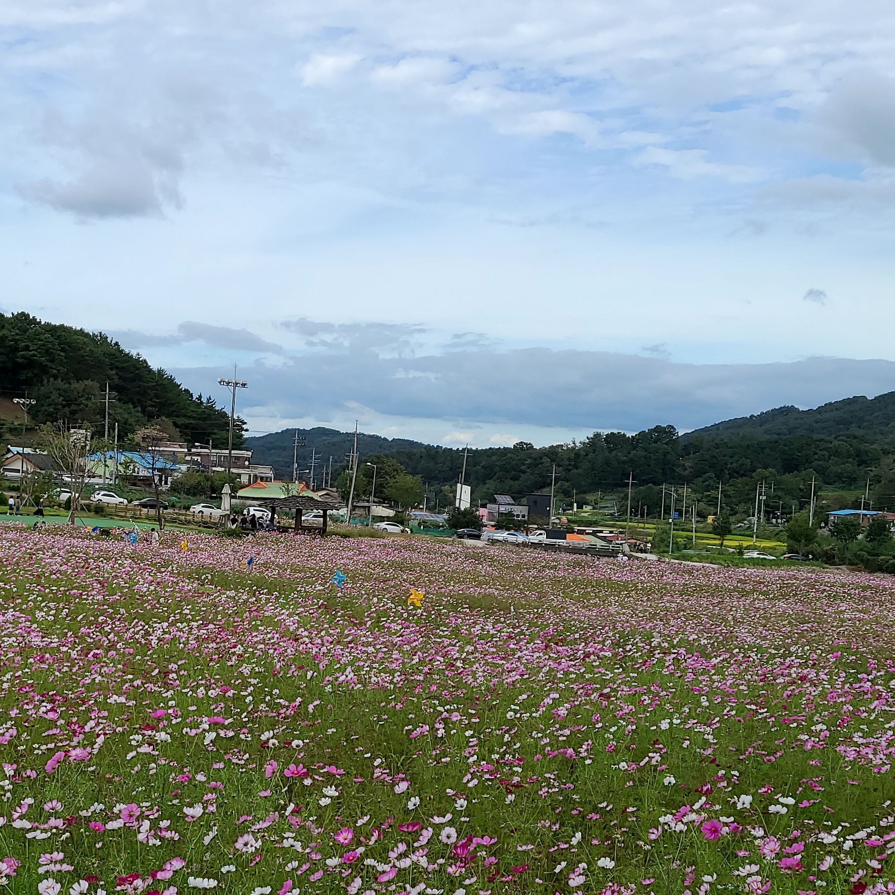 대전 계족산 가는 길에 코스코스 볼만한 곳이 있다. 장동 만남의 광장이라고 불리우는 이곳은 예전에는 축제도 열리는 행사가 했었는데 지금은 예쁜 꽃밭만 있다. 코스모스와 함께 사진찍으면 예쁜 곳이다.
