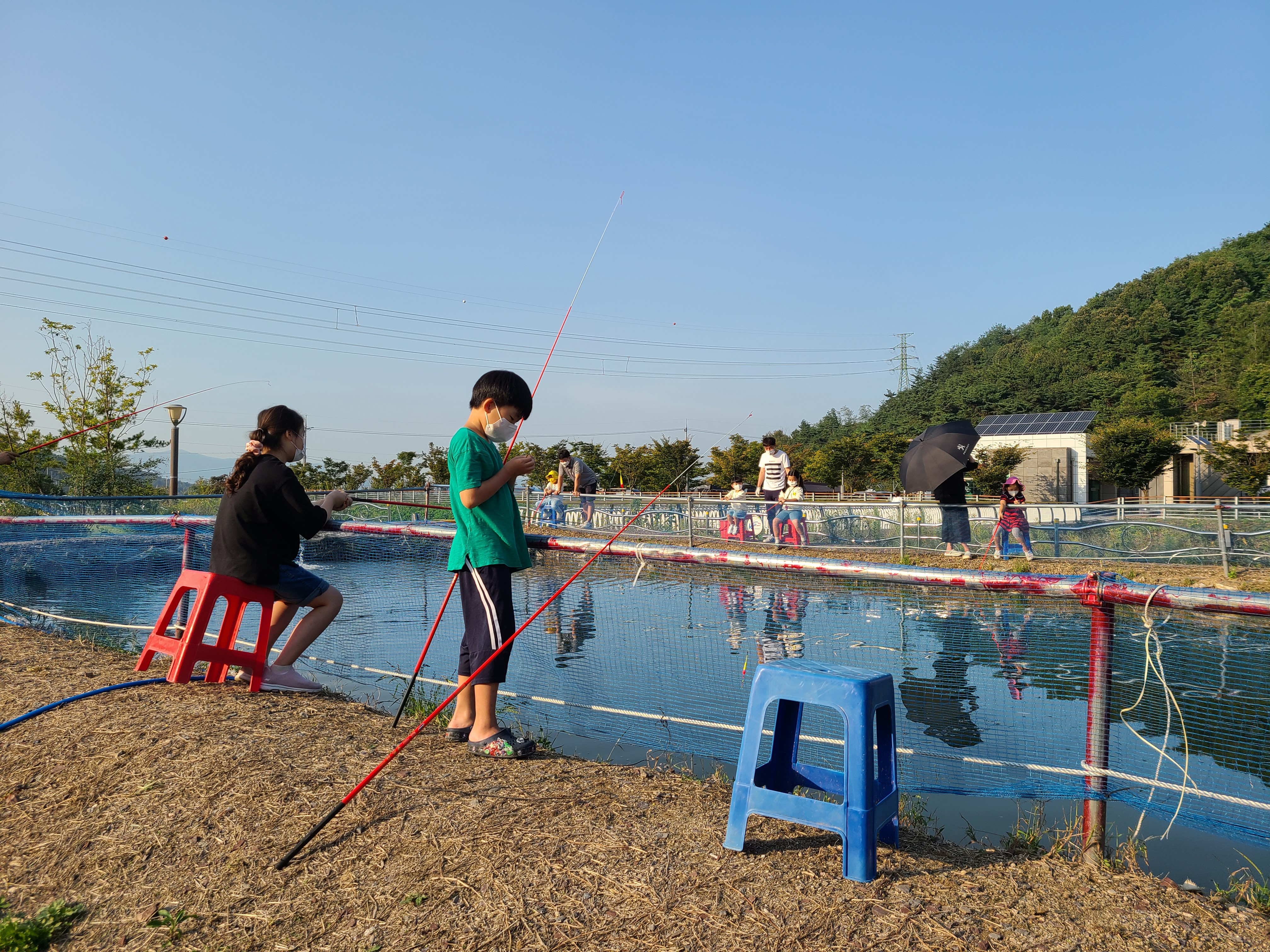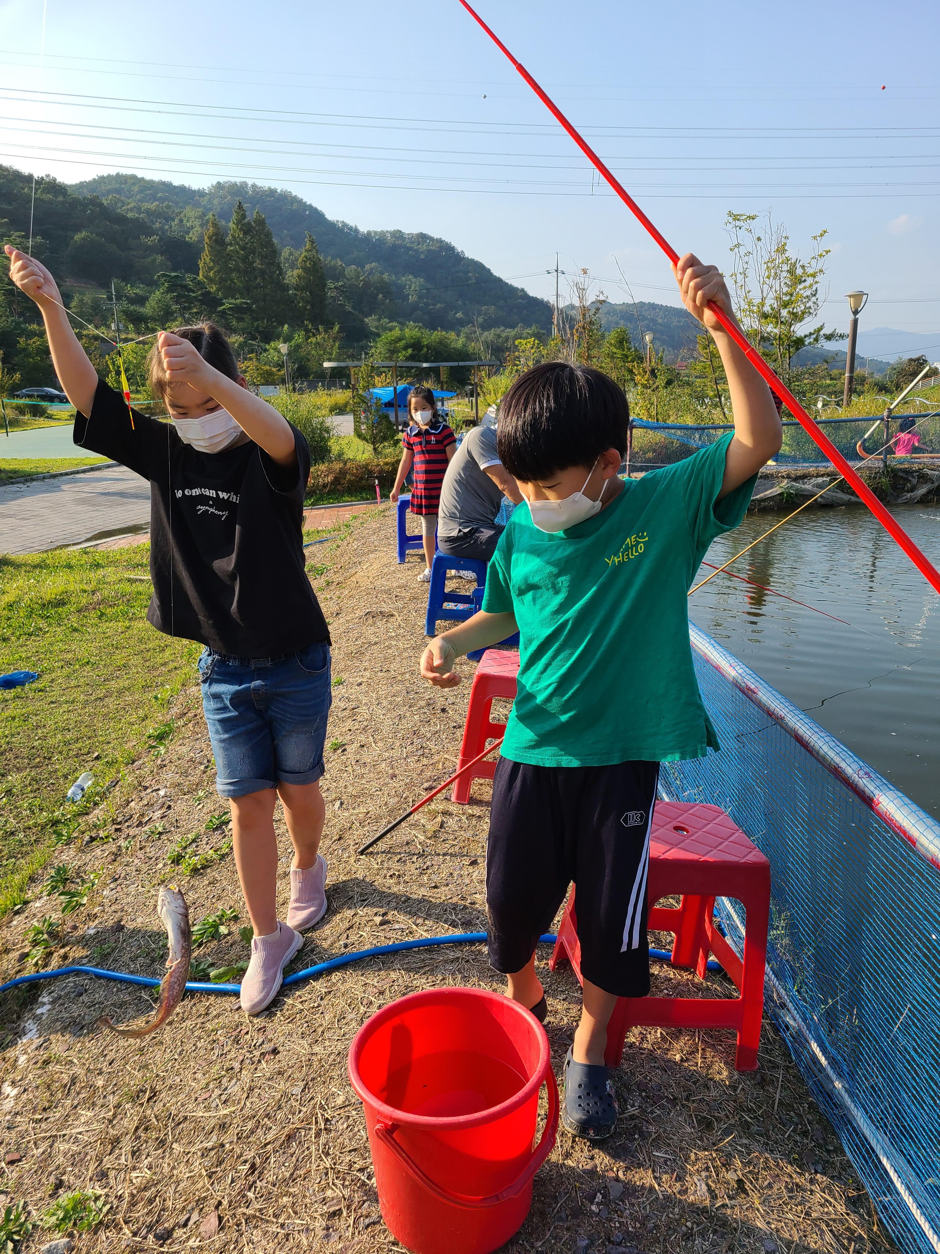 삼기 조아유 마을은 마을 공동체에서 여러 가지 행사도 하고 민박도 하고 캠핑장도 운영하는 등 활발한 활동을 하는 마을 중에 하나이다. 작년에 왔을 때는 고구마 캐기와 낚시터를 운영했었다. 아이들이 낚시를 하고 싶다고 해서 데리고 와봤다.