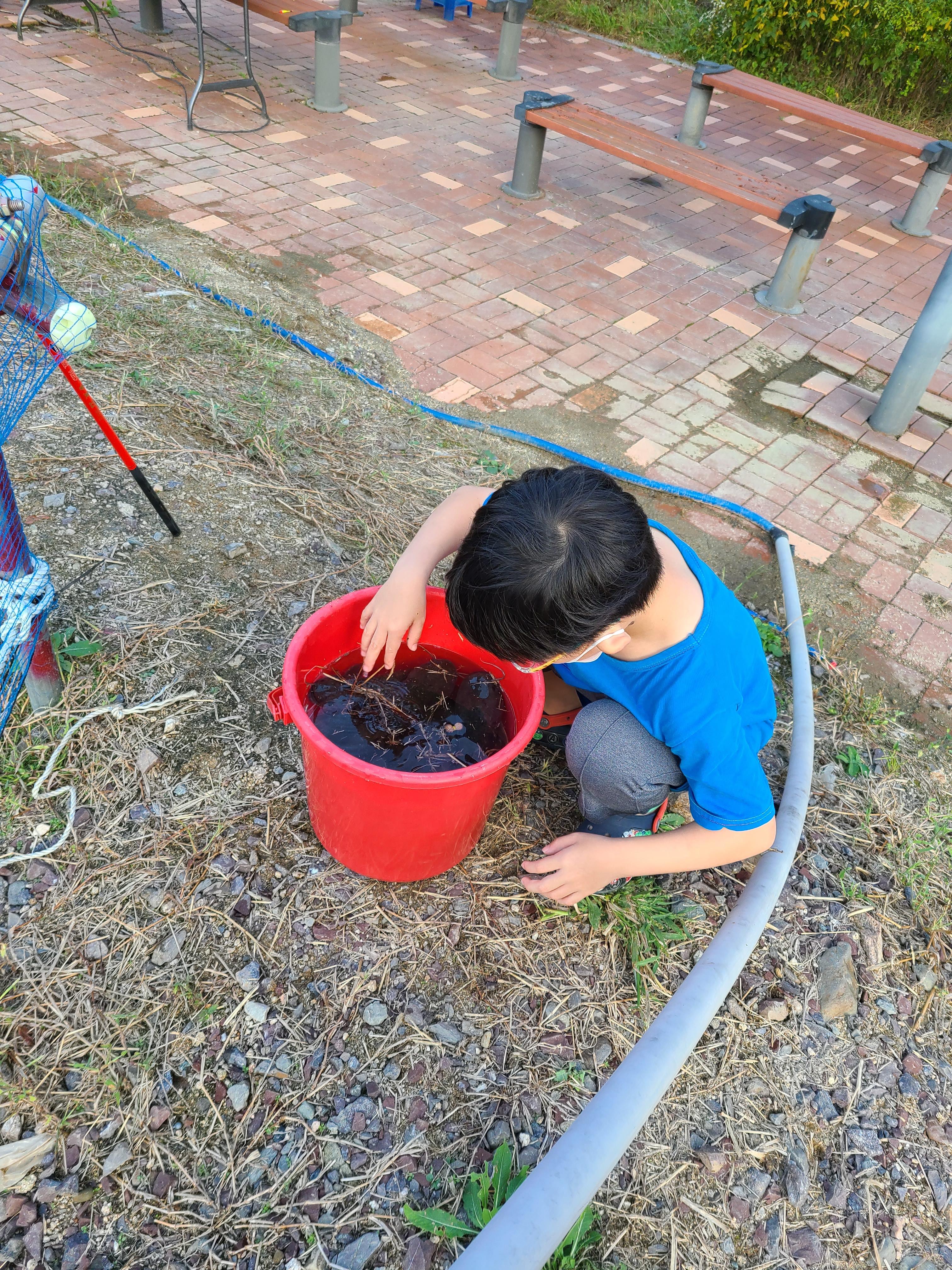잡은 메기는 가져갈 수도 있고 풀어줄 수도 있다고 했다. 우리는 한마리 풀어주었다. 둘째는 메기를 손으로 잡고 풀어주었다.
