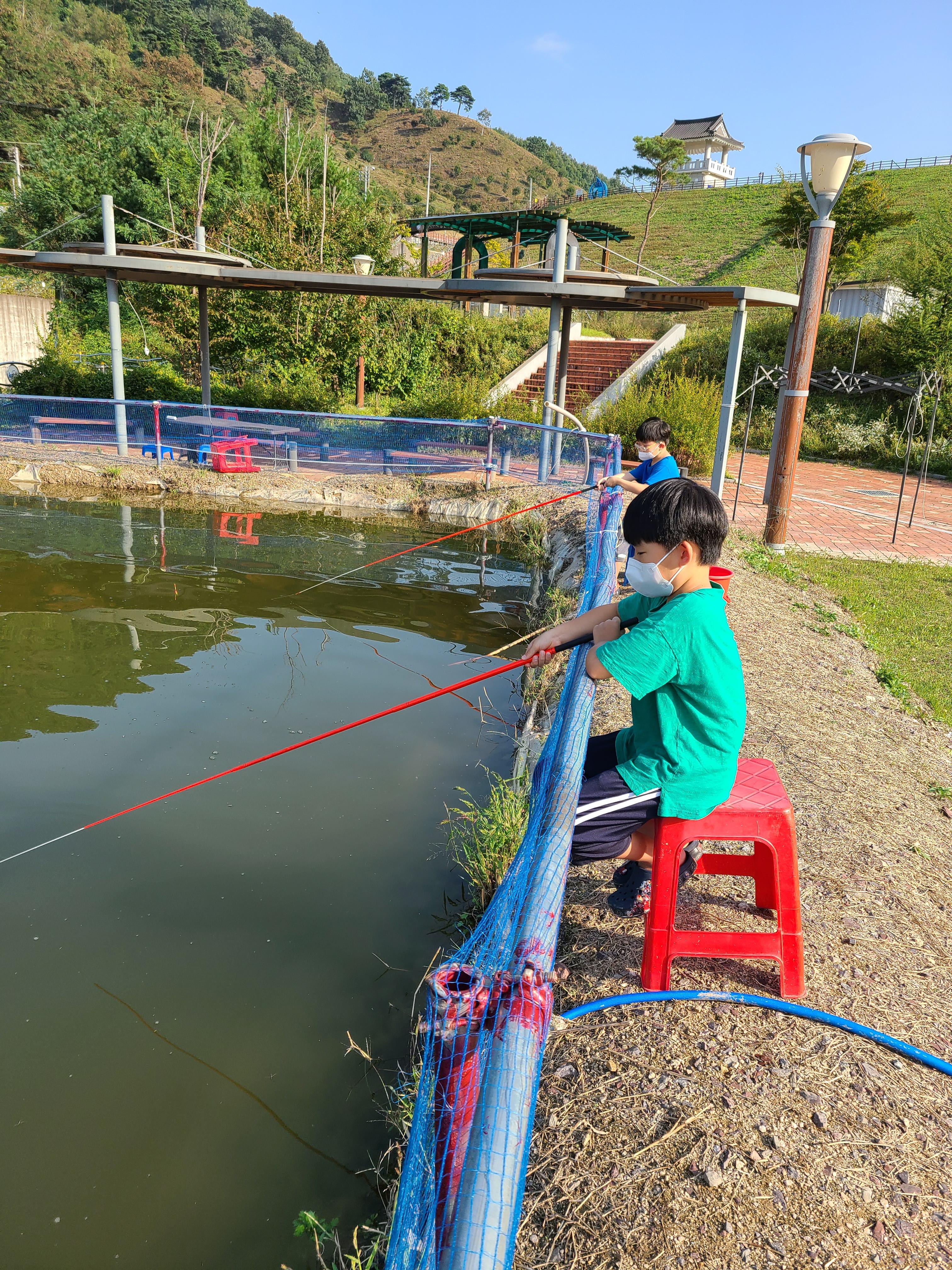 저수지에 낚시하는 곳이아니라 아이들이 체험할 수 있게 꾸며놓은 것이다. 매점에서 문의를 하면 아저씨가 낚싯대와 물고기 밥을 빌려주셨다. 낚시데 빌리는 가격은 만원이다. 낚시하는 방법도 알려주시고 낚시 바늘에 밥 꼬이는 방법, 낚싯대 던지는 방법도 알려주셨다.