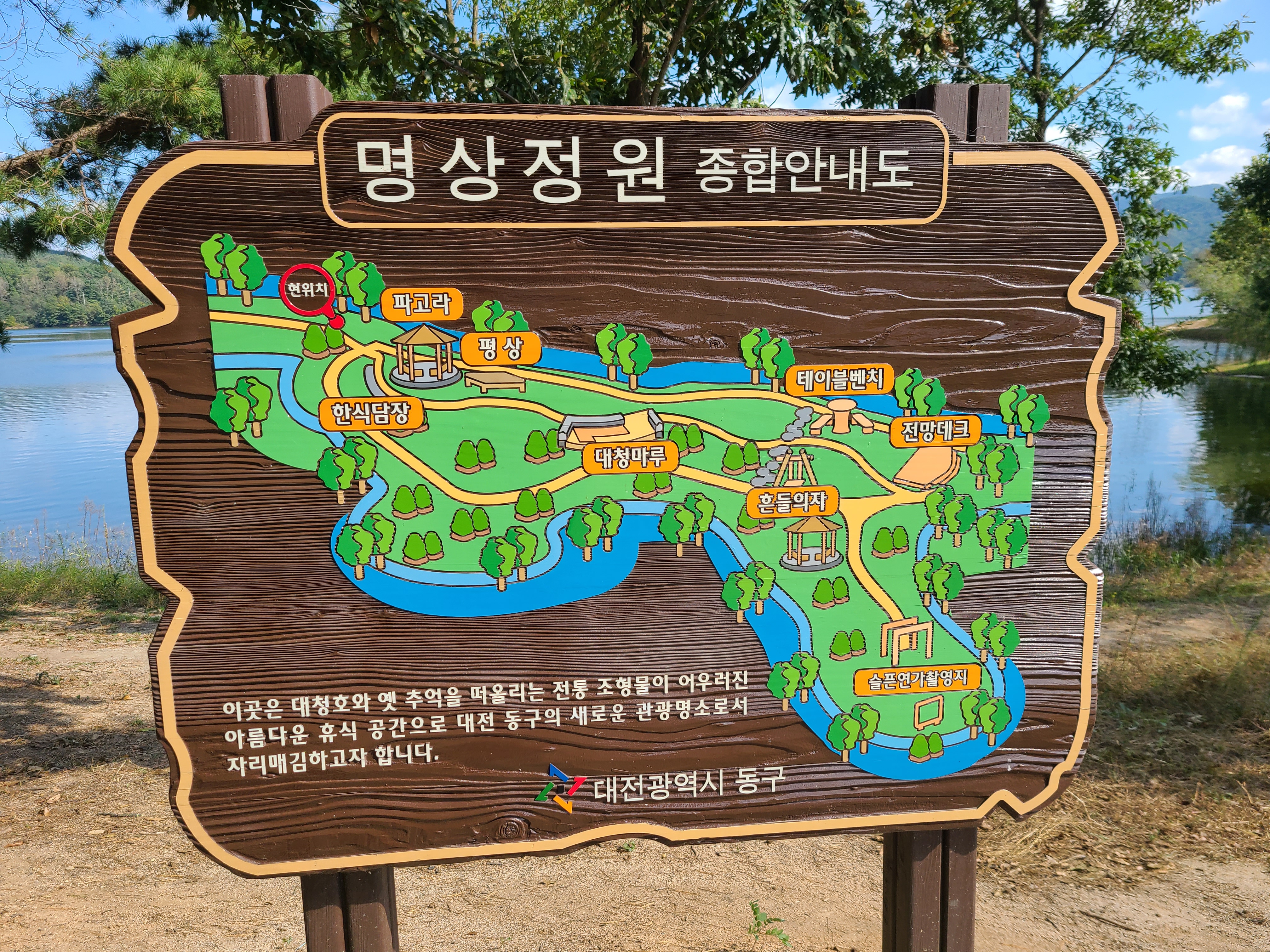 걷다 보면 또 명상정원이 나온다. 대청호와 옛 추억을 떠올리는 조형물이 어우러진 곳으로 대전 동구의 관광명소로 자리 잡았다고 한다.