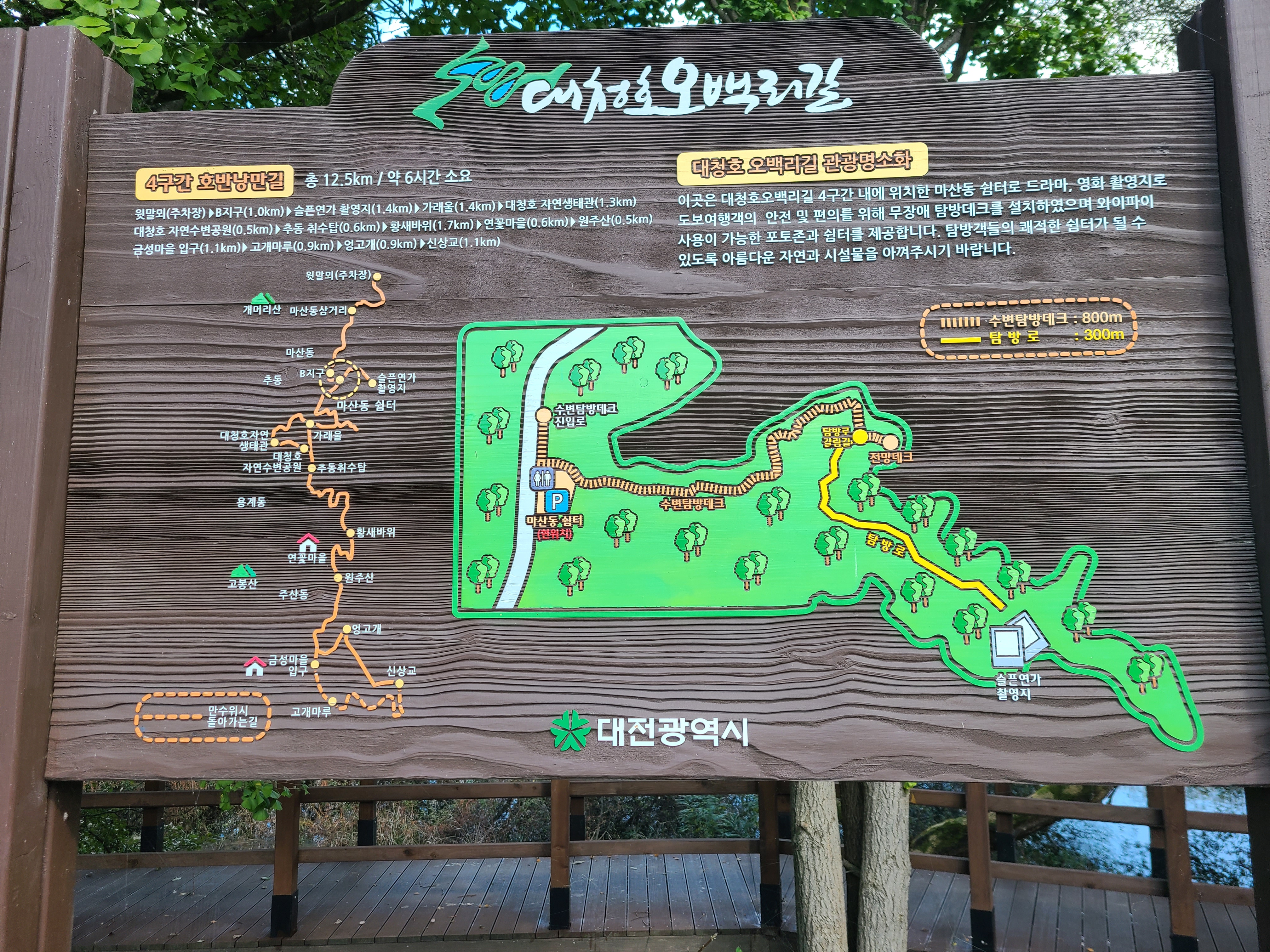 대청댐 대청호오백리길 4구간 지도이다. 12.5km 6시간 정도 소요되는 길이다. 그중에 내가간길은 1.4Km로 산책수준으로 했다.