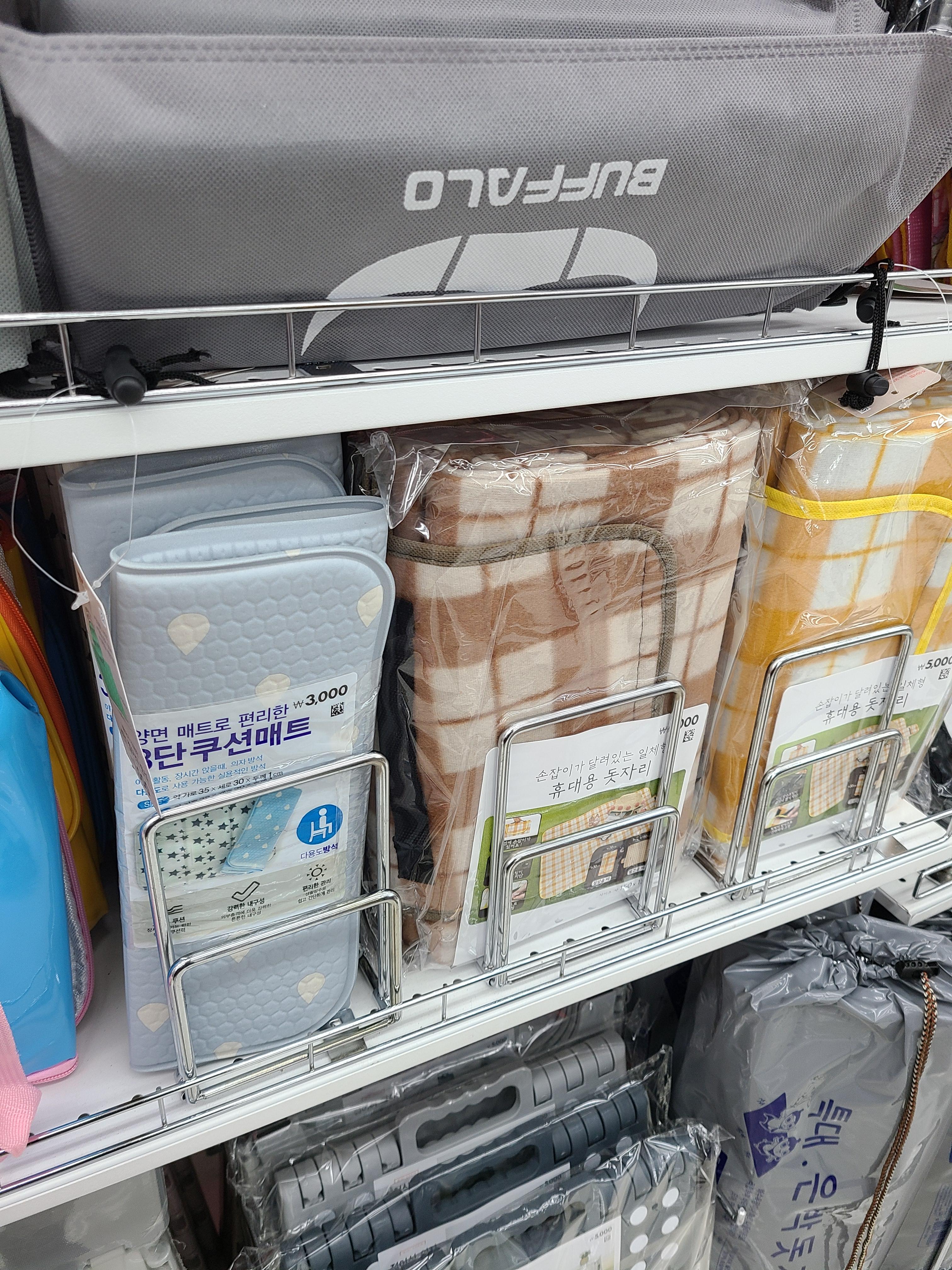 목욕탕에서도 자주볼수 있는 양면 매트로 편리한 3단 쿠션매트 3000원입니다.