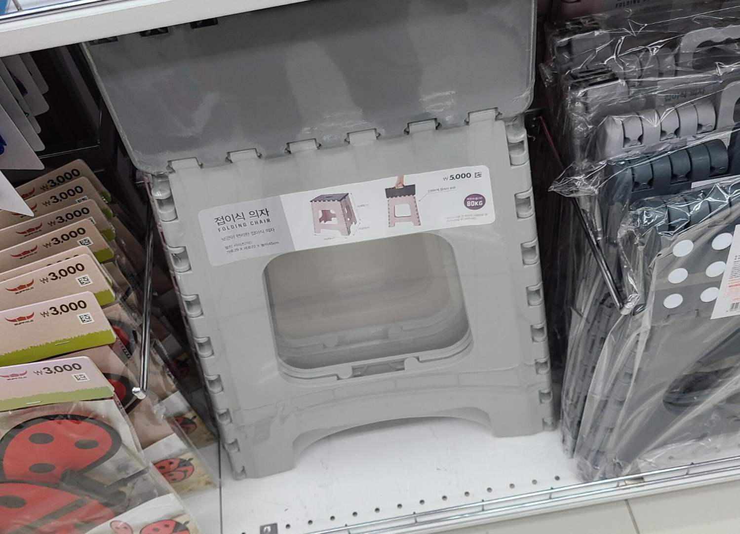 다이소 접의시기 의자 손잡이가 달려있어서 이동하기 편할 듯 합니다. 5000원