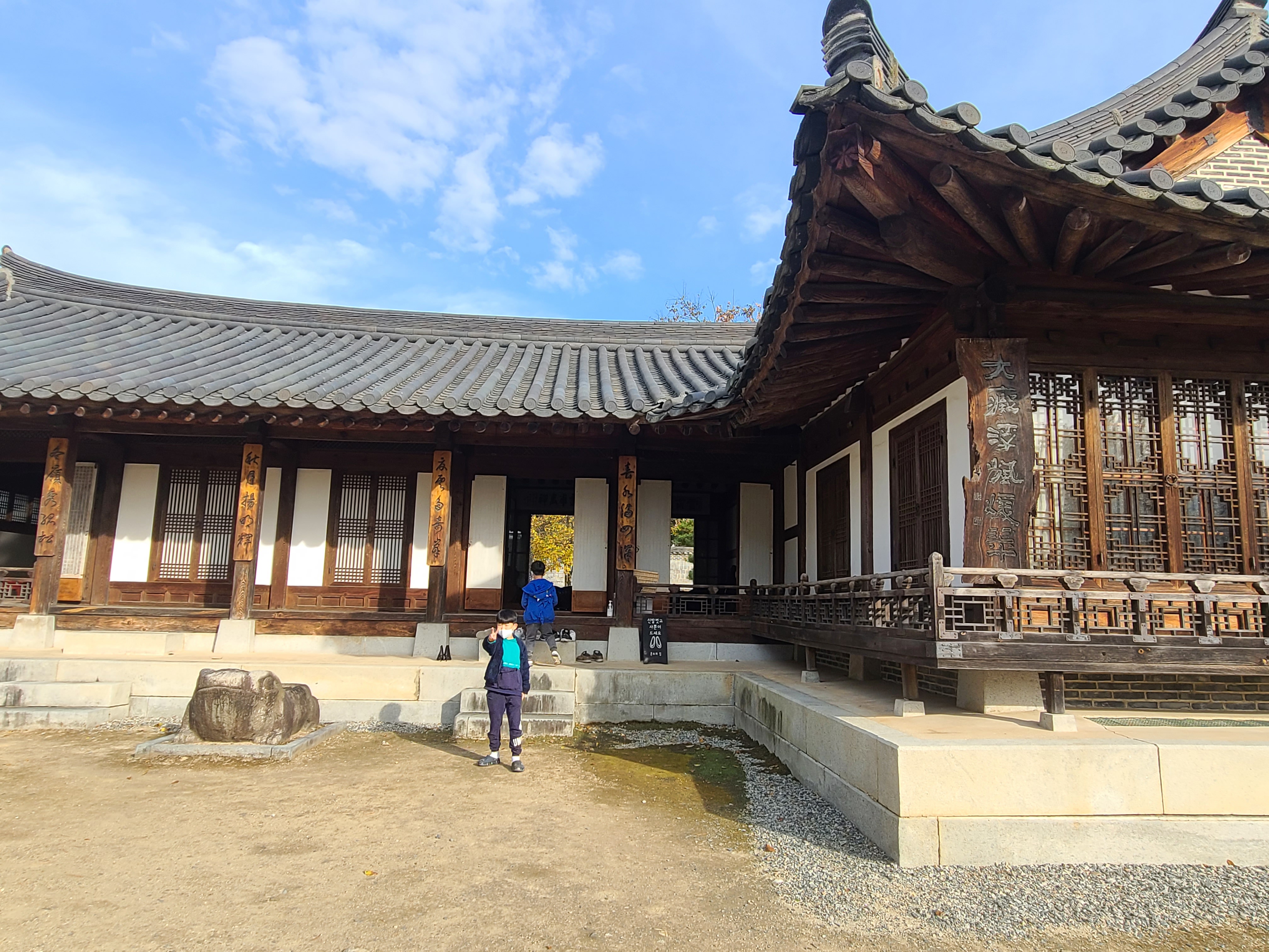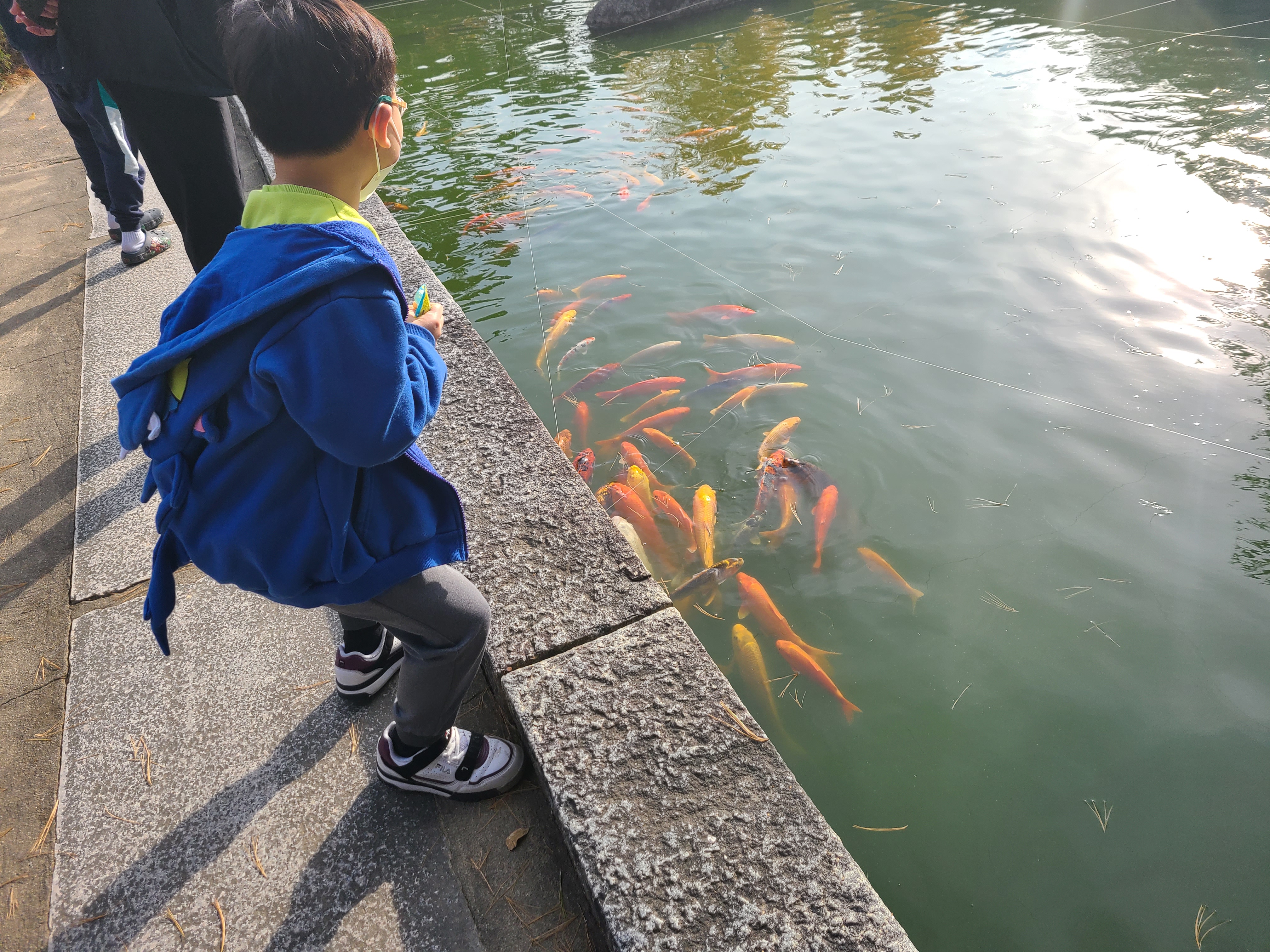 정자 앞에는 연못이 있는데 아이들은 한옥보다는 잉어 떼에 더 관심이 많았다.