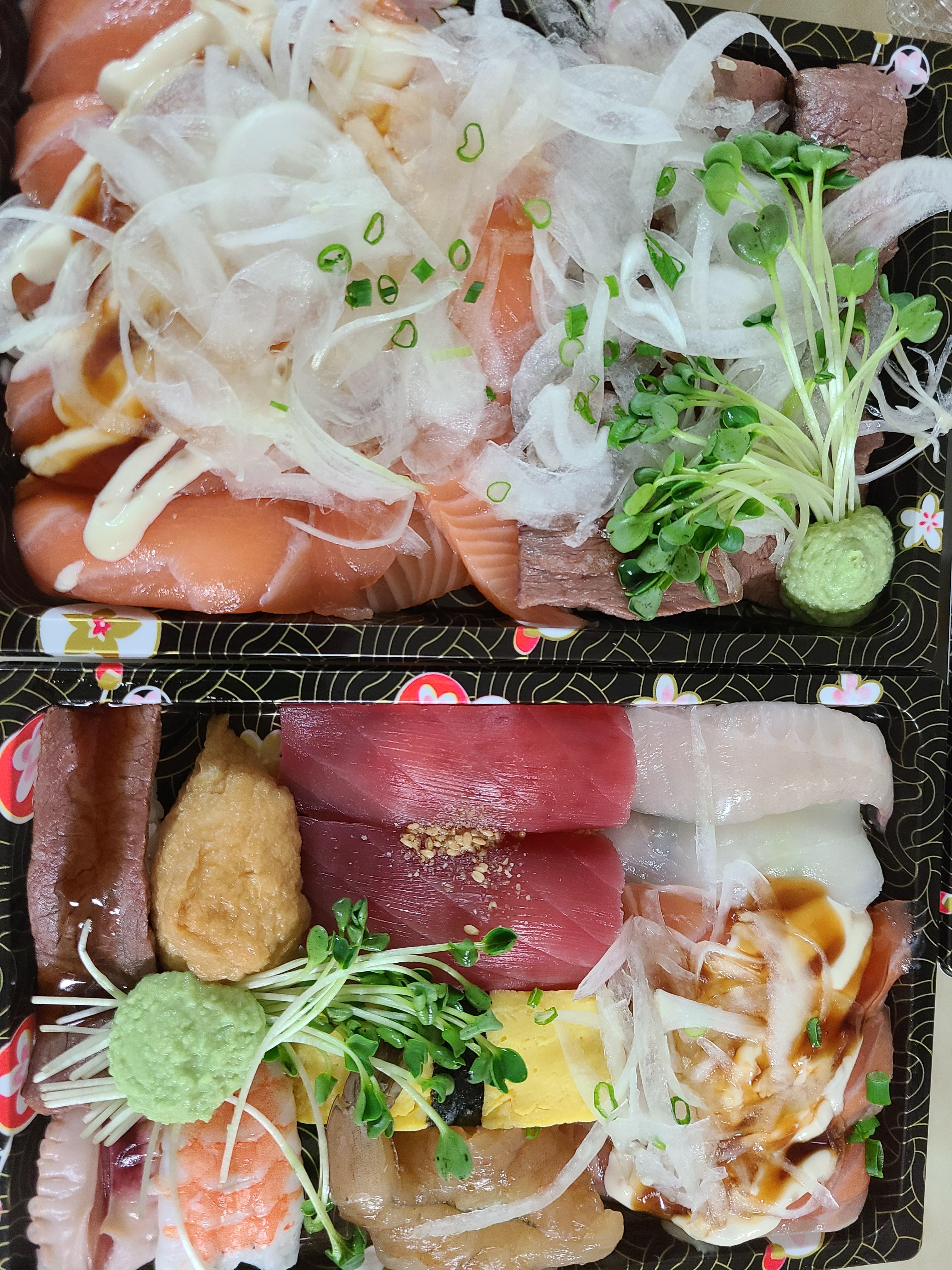 연어초밥과 소고기 초밥세트와 오늘의 초밥세트를 시켰다.