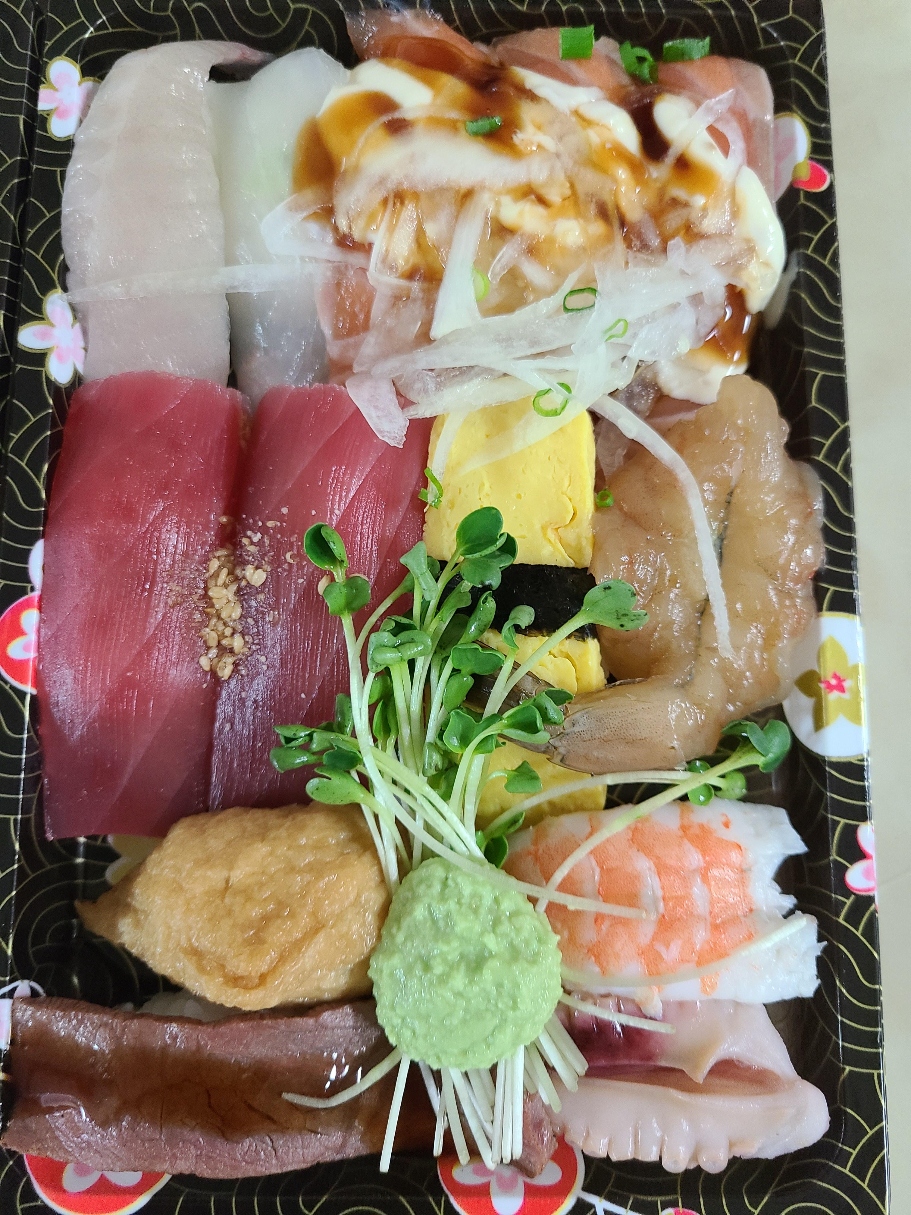 연어초밥 시키면 이렇게 나오는데 연어 길이가 다른 초밥집에 비해 두배는 긴듯 싶다. 연어 입맛이 깐깐한 남편이 이곳만 시키리고 한다.