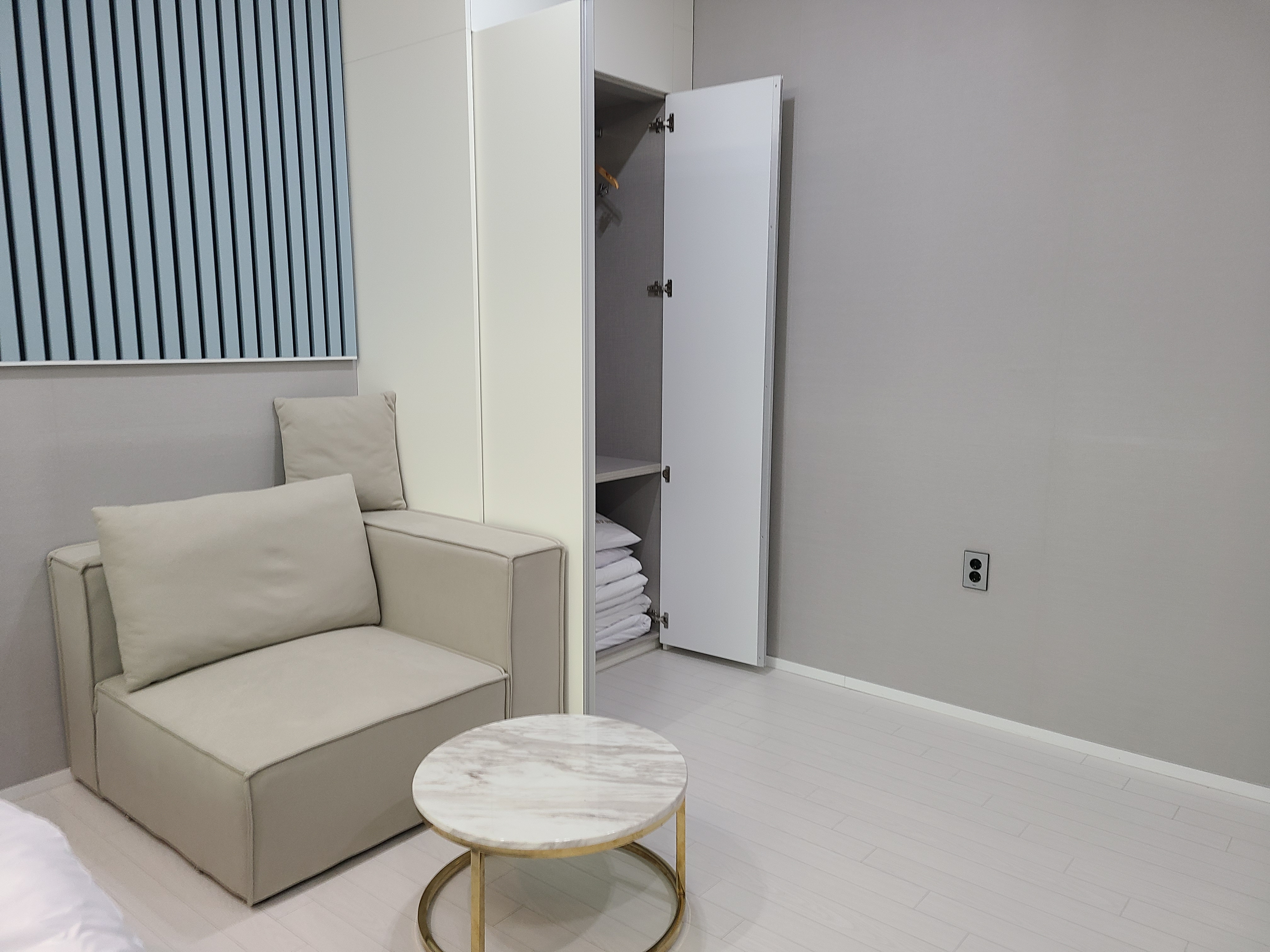 간식을 먹을 수 있는 테이블이 있어요. 하지만 세신배드는 없다는 것이 좀 아쉽습니다.