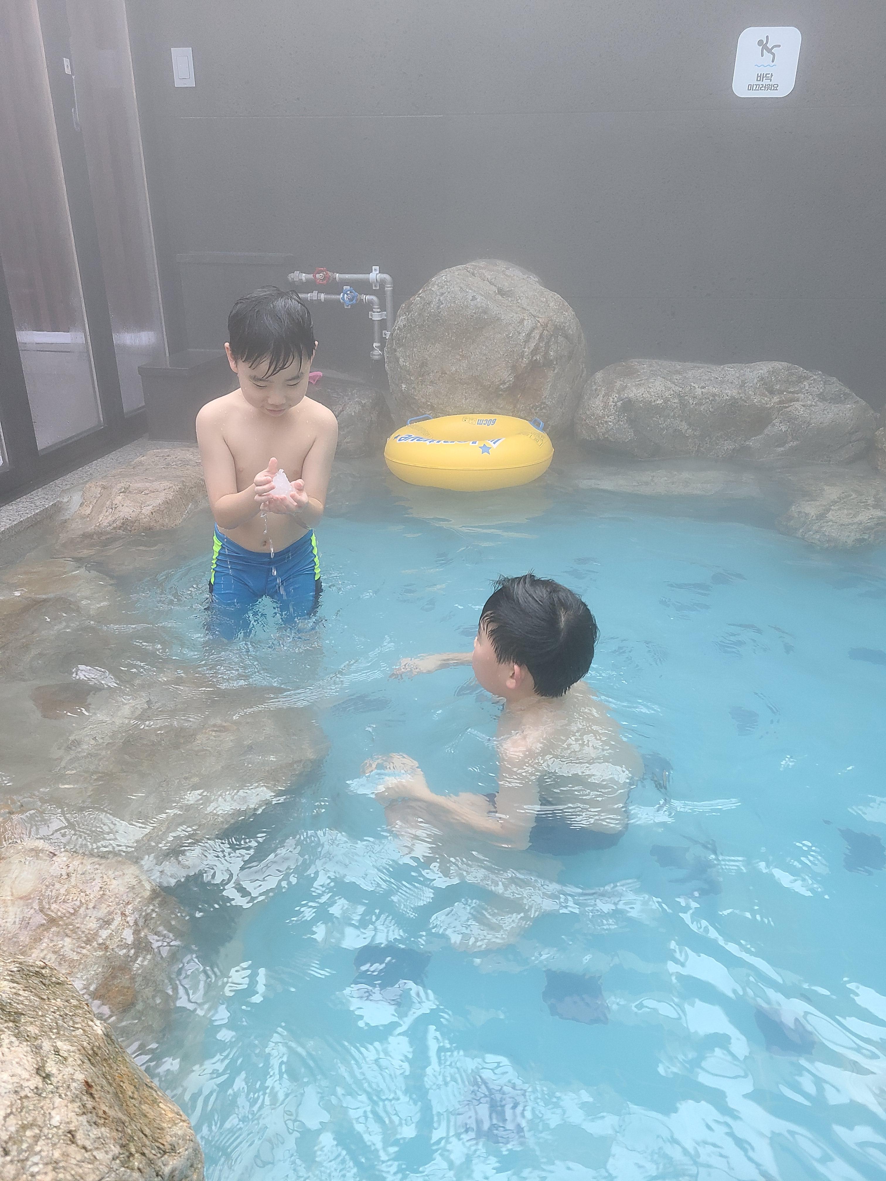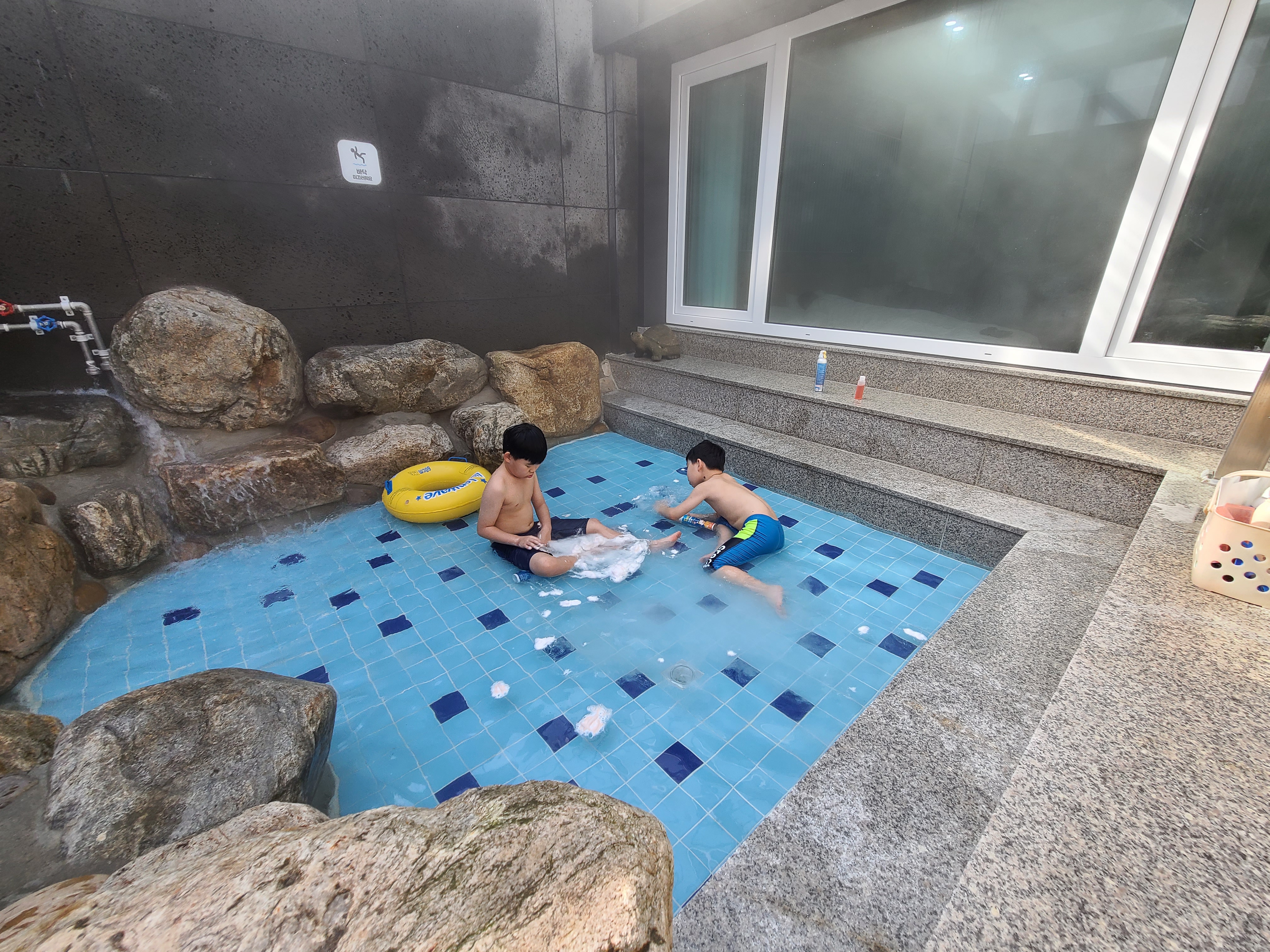 노천탕을 예약을 못했다면 대중탕형 특실도 추천합니다. 탕도 넓고 아이들이 놀기 좋은 딱 예전 목욕탕 수준입니다. 여기도 강추합니다.