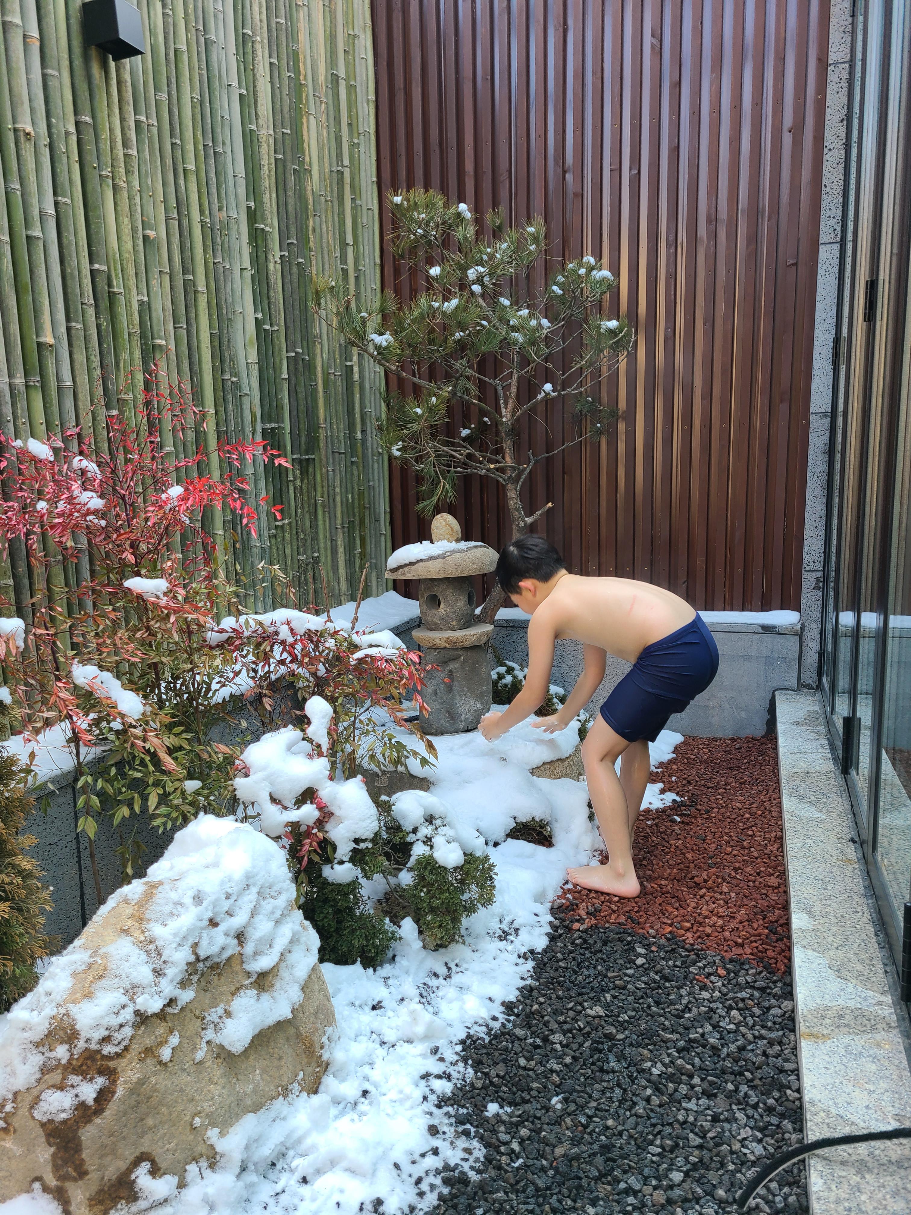 밖에서 가져온 눈을 가지고 노네요. 이것이 노천탕의 즐거움이겠지요.