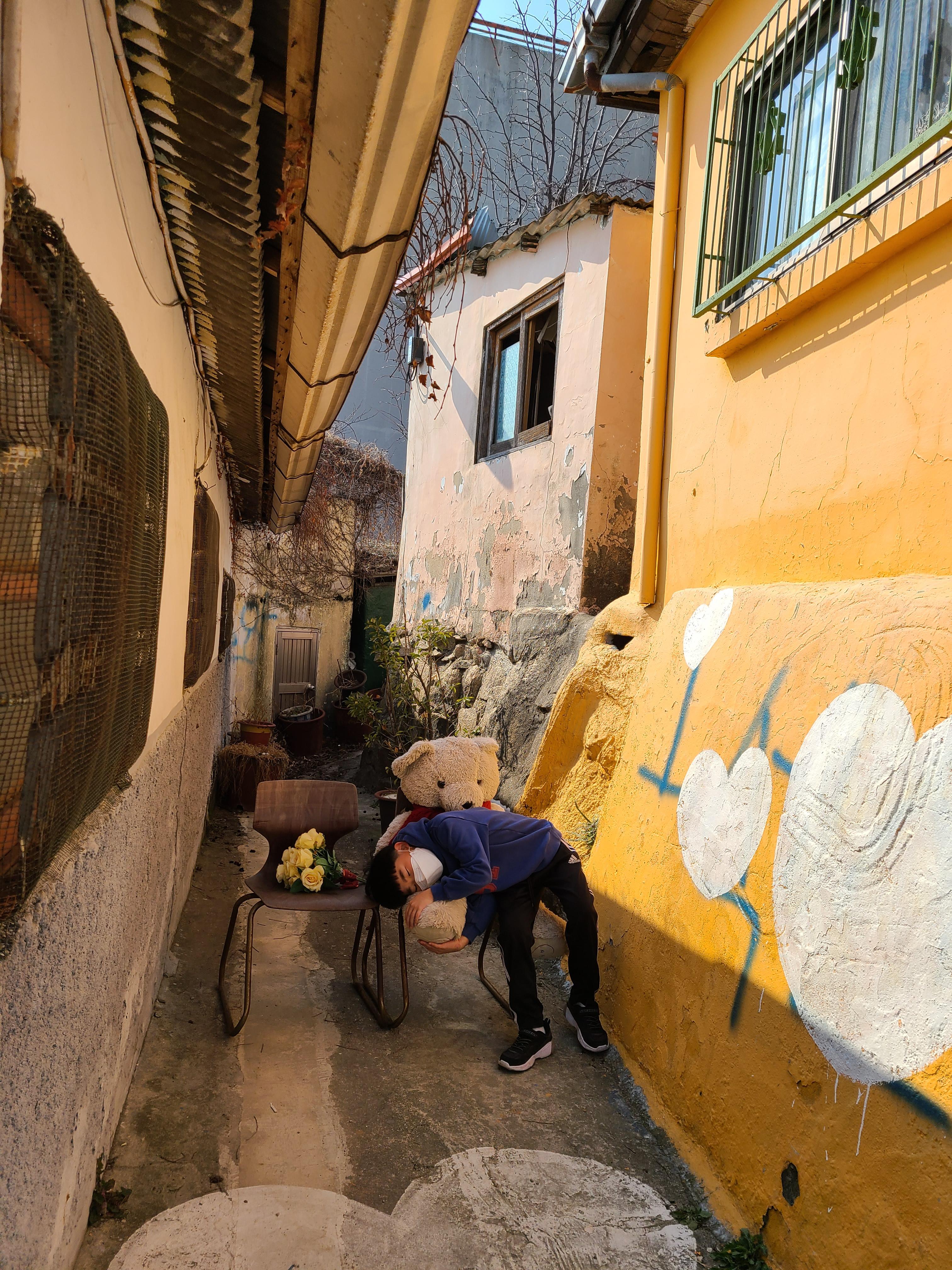 서산동 시화 골목 바로 앞 연희 슈퍼를 지나 서산동 시화골목에 올라갑니다. 좁은 골목에 그림이 그려져 있고 바로 앞에 바다가 보이는 것이 통영 동피랑 마을과 닮았습니다. 예전엔 다 그런 골목이 익숙하지만 요즘은 골목이란 말도 아이들은 익숙하지 않습니다.