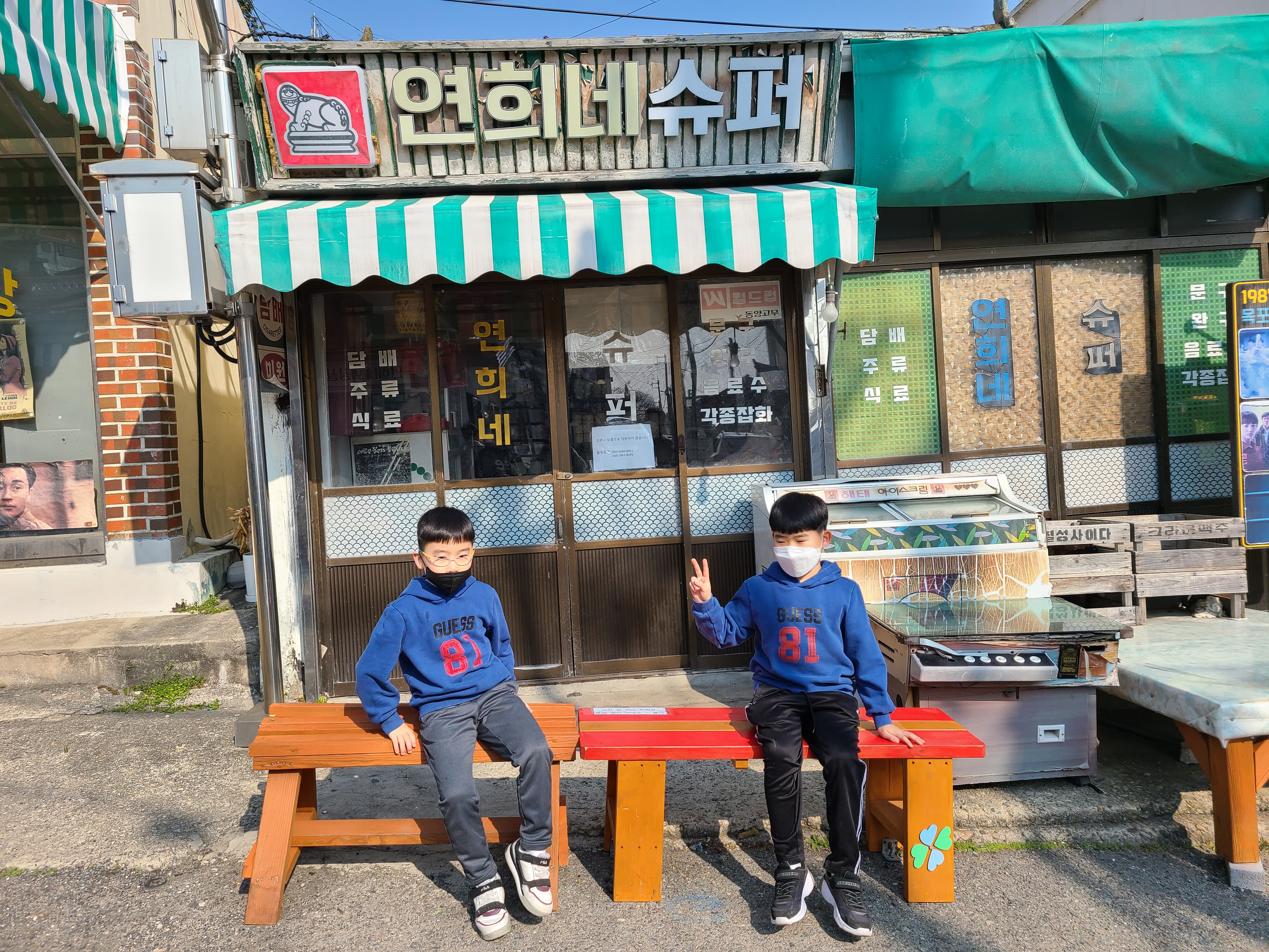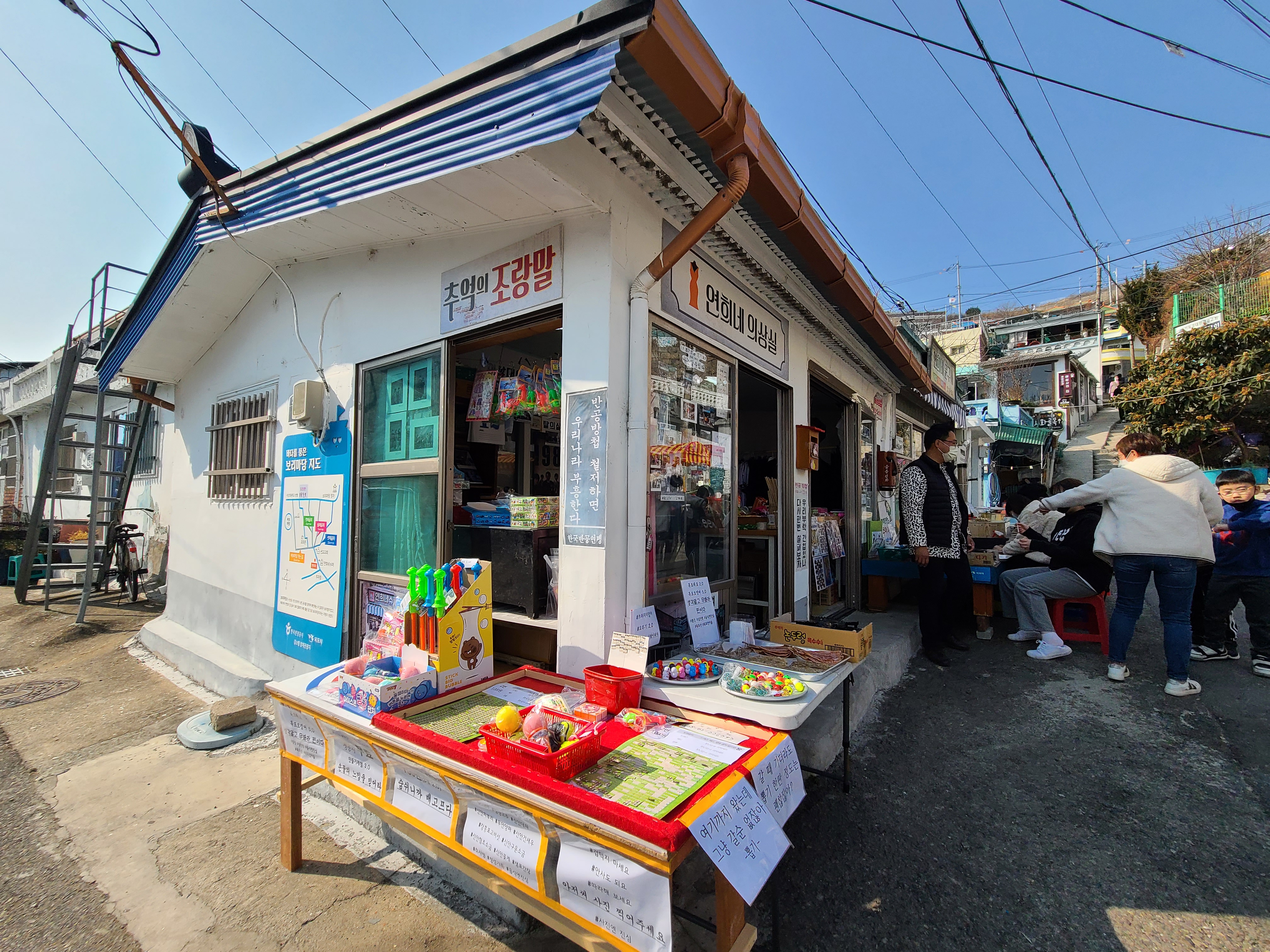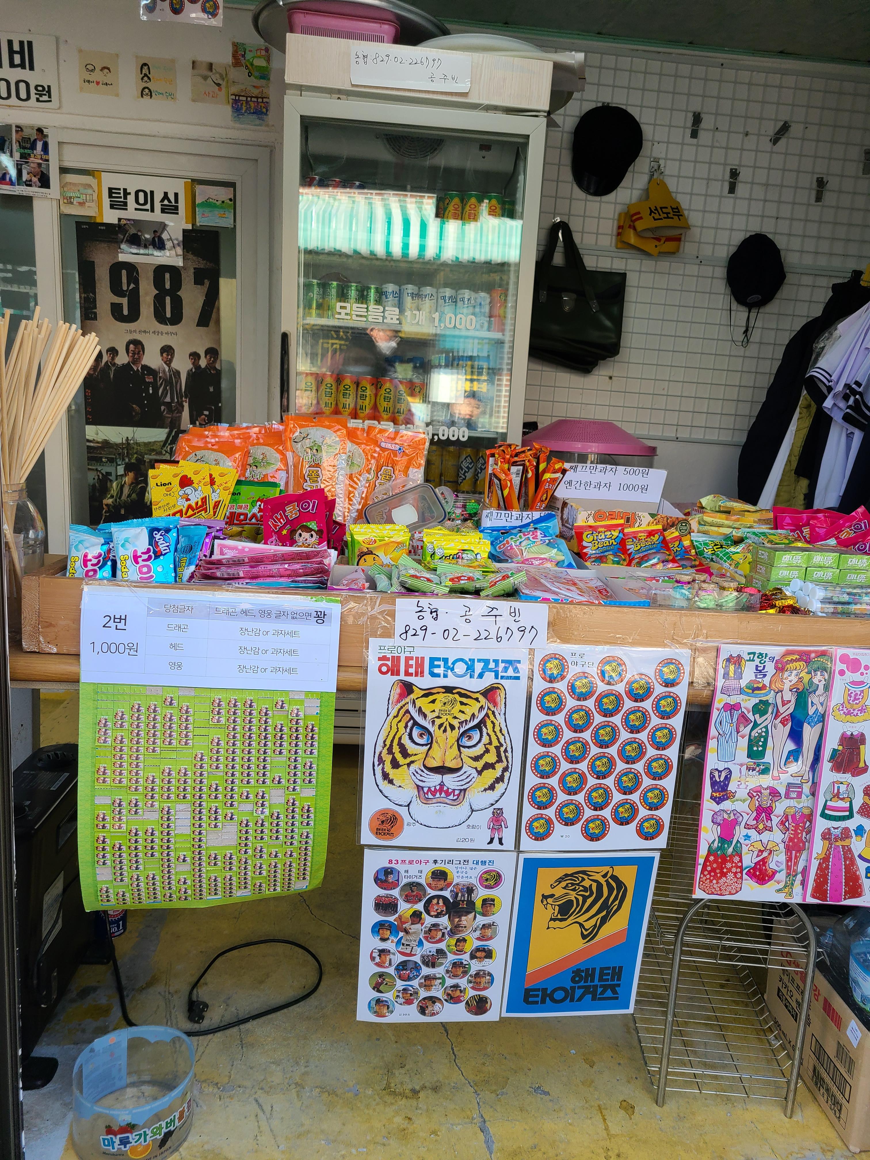 연희네 슈퍼 앞에는 연희네 문구사가 있습니다. 그 사장님이 연희네 슈퍼 앞에서 사진도 찍어주시고 예전 문구사에서 팔던 과자와 뽑기 같은 것이 있습니다.