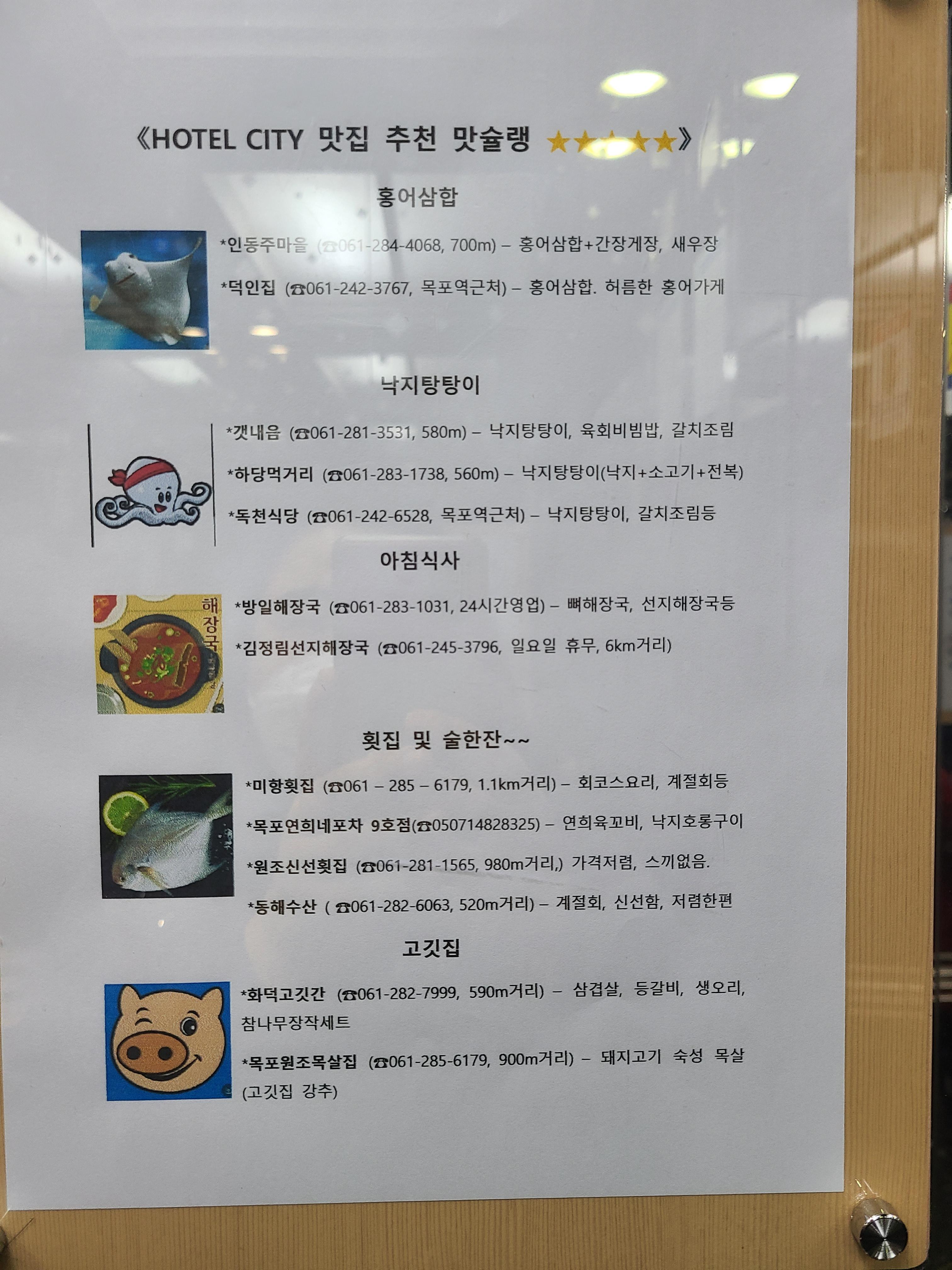 호텔 시티에서 추천해준 목포 맛집입니다.