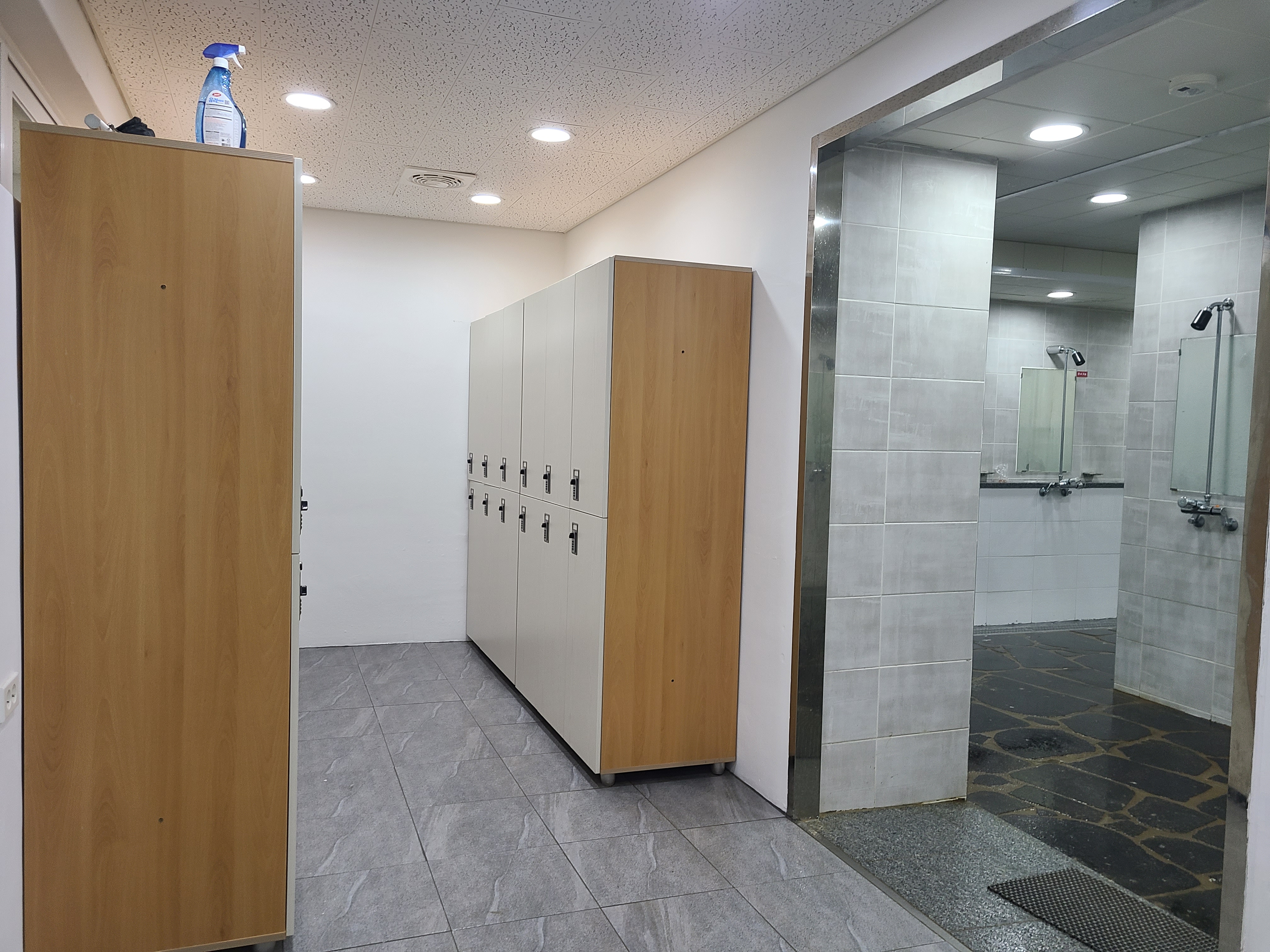 탈의실과 샤워장이 거의 붙어있는 구조이다. 아이들에게 알려줄때는 갈아입을 옷을 옷장에다가 넣고 샤워를 한 다음에 수건으로 닦고 수영복 챙겨서 옷장에 있는 옷으로 갈아입는다고 하면 된다.